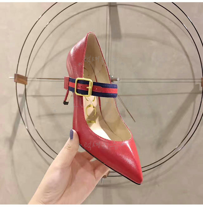 GUCCI-475086 6488 구찌 레드 가죽 미드힐 펌프스 여성용