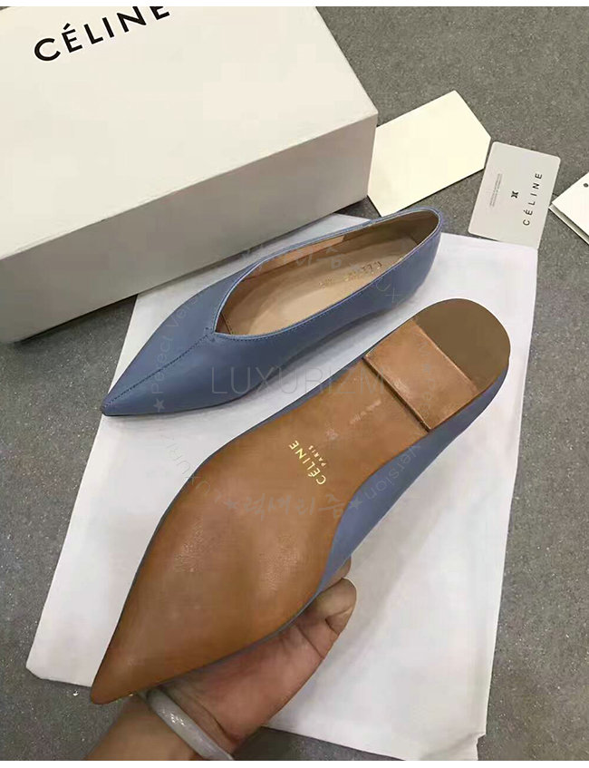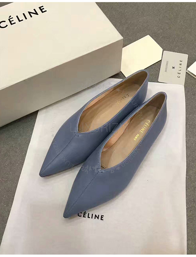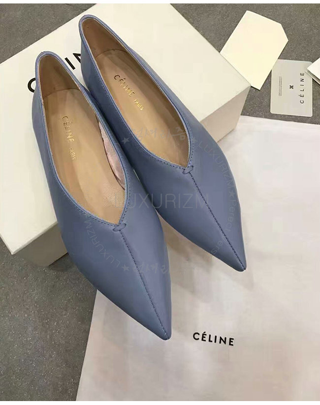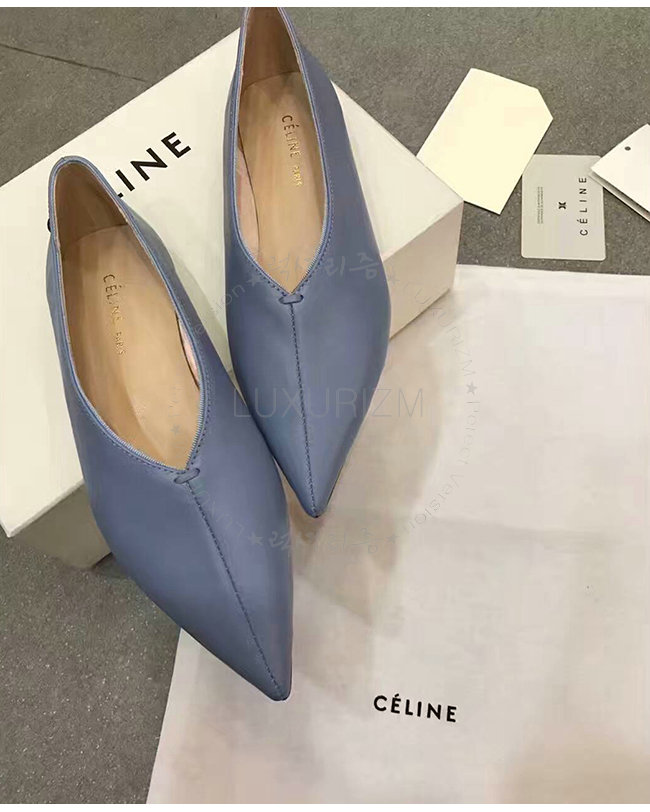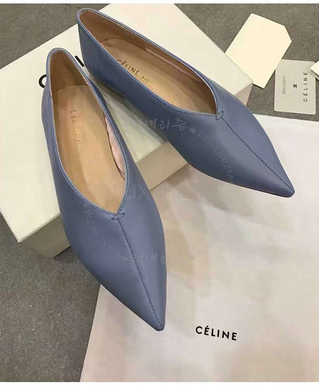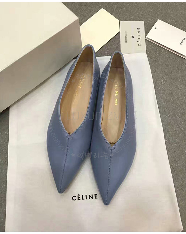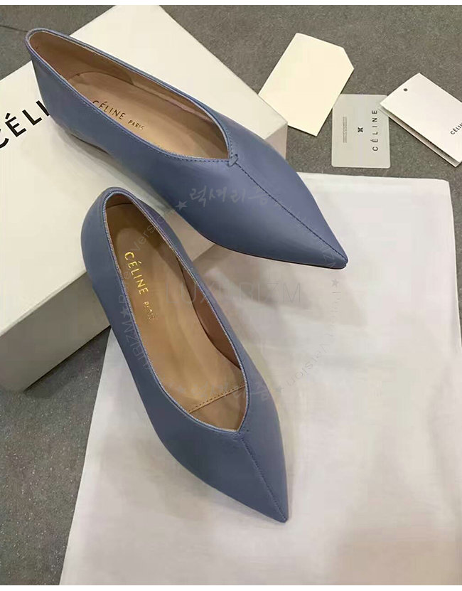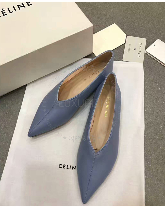 #여성신발전문사이트 셀린느전문몰 명품매니아들이 즐겨찾는 샵 럭셔리즘 http://www.boslenza.com CELINE-319083 셀린느 V닉 스틸 블루 카프스킨 플랫 여성용