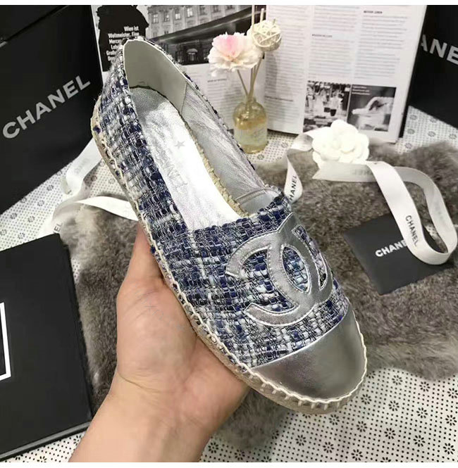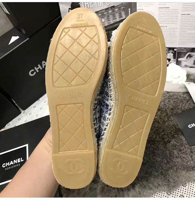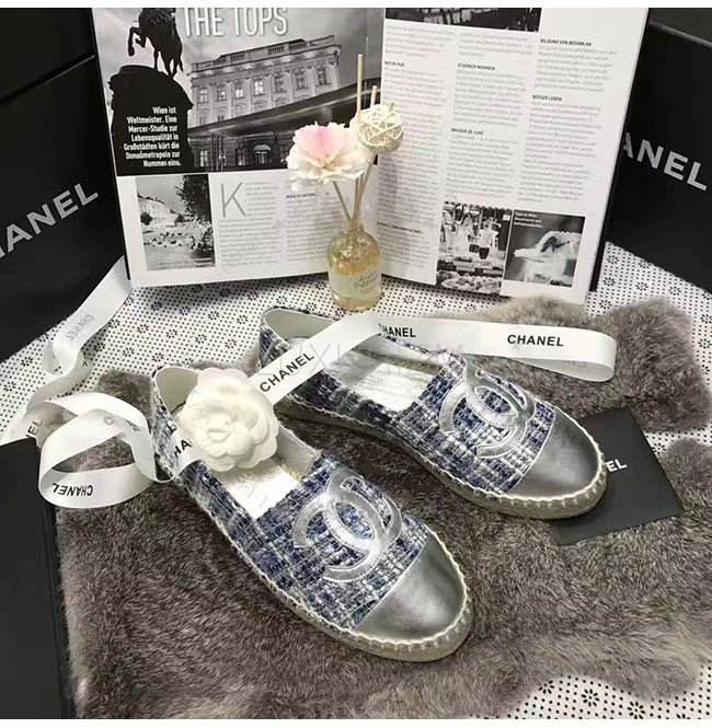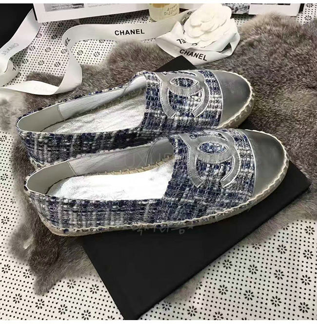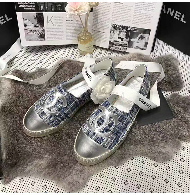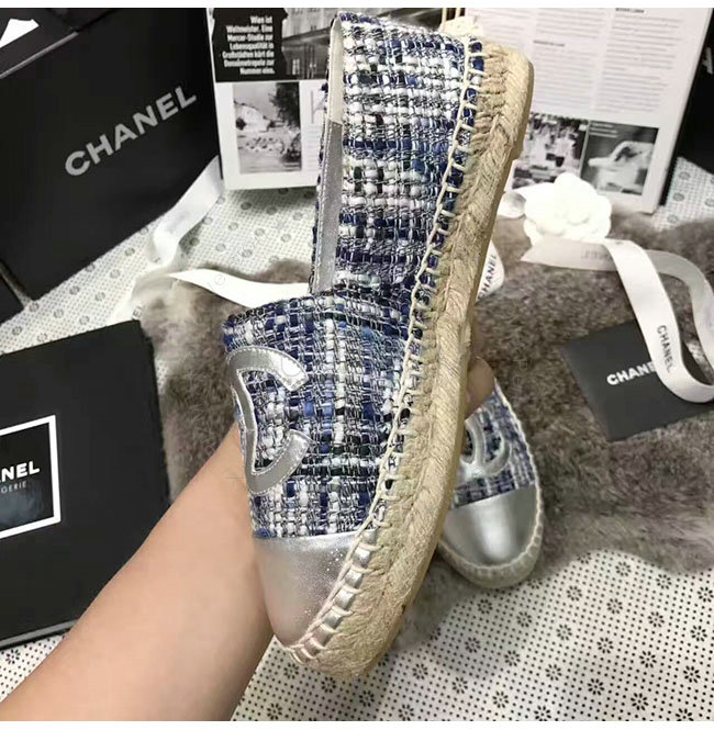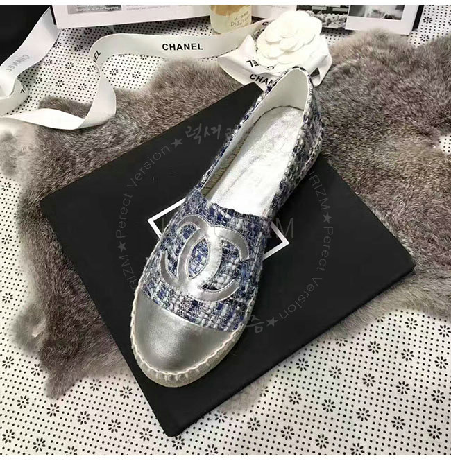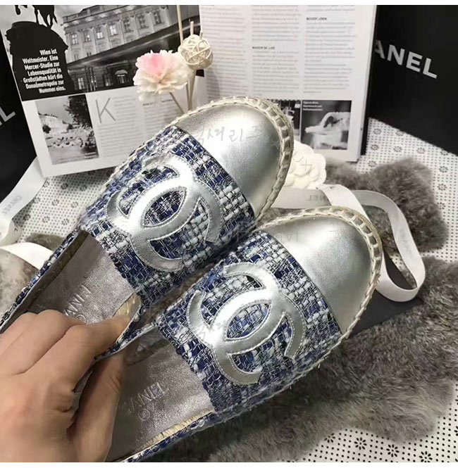CHANEL-G29762 샤넬 메탈릭 램스킨 트위드 네이비 실버 에스파드리유 여성용