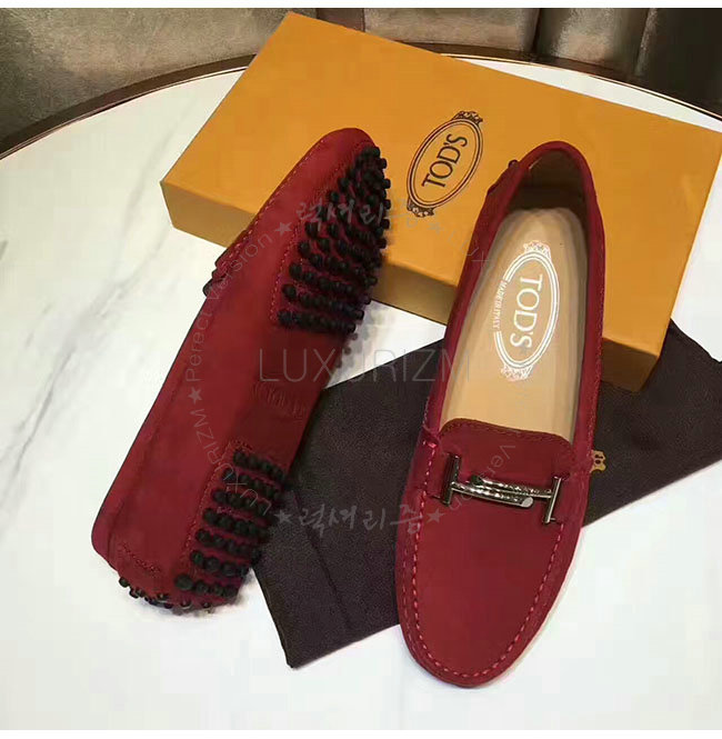 TODS-00G0Q490 토즈 드라이빙 레드 가죽 슈즈 여성용