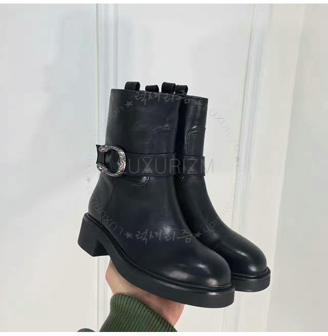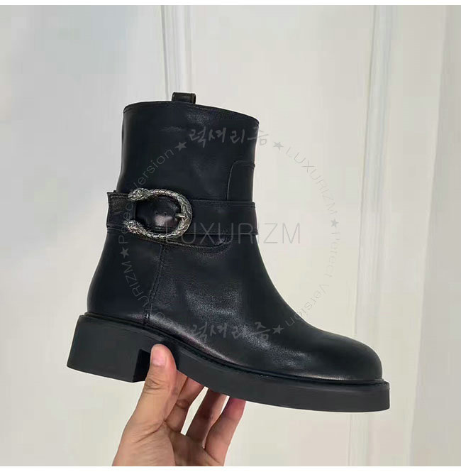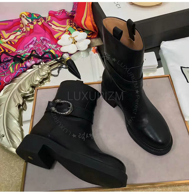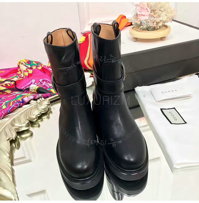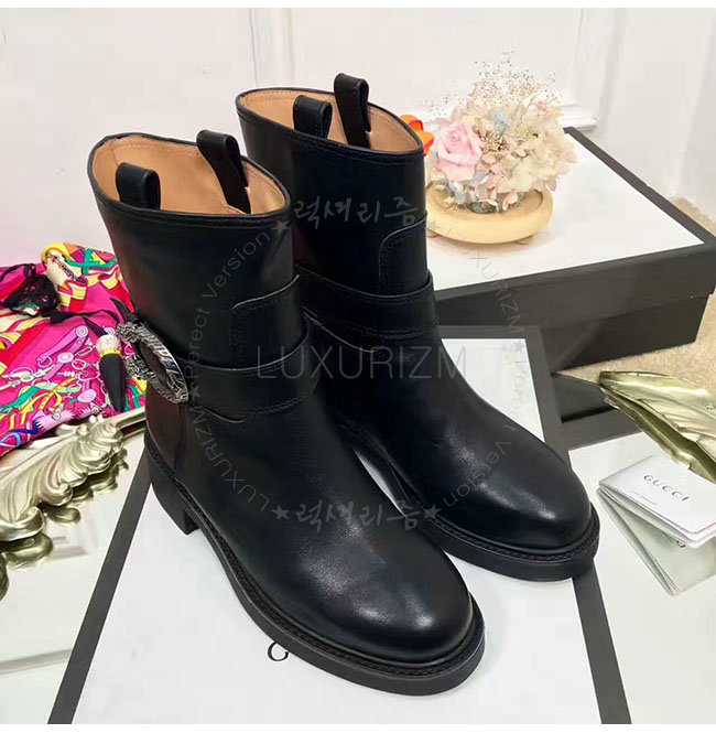 GUCCI-432085 1000 구찌 블랙 가죽 앵클 부츠 여성용