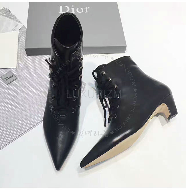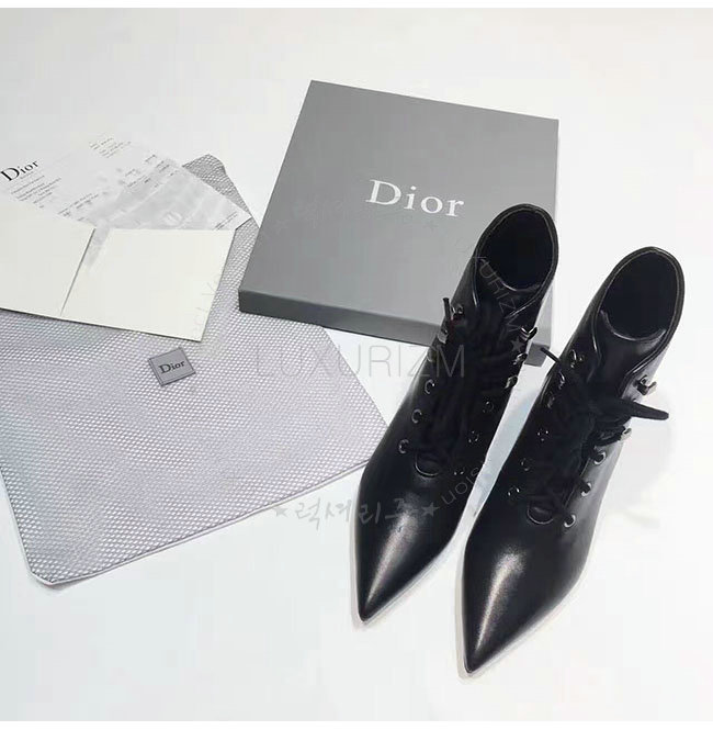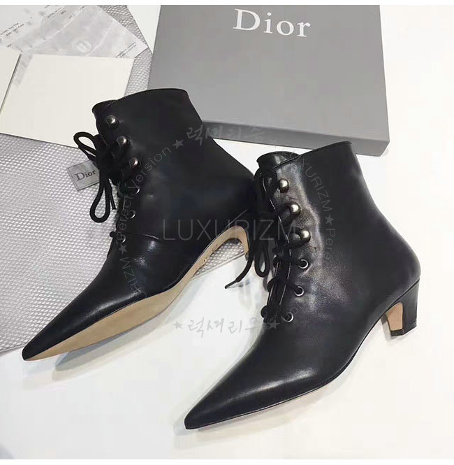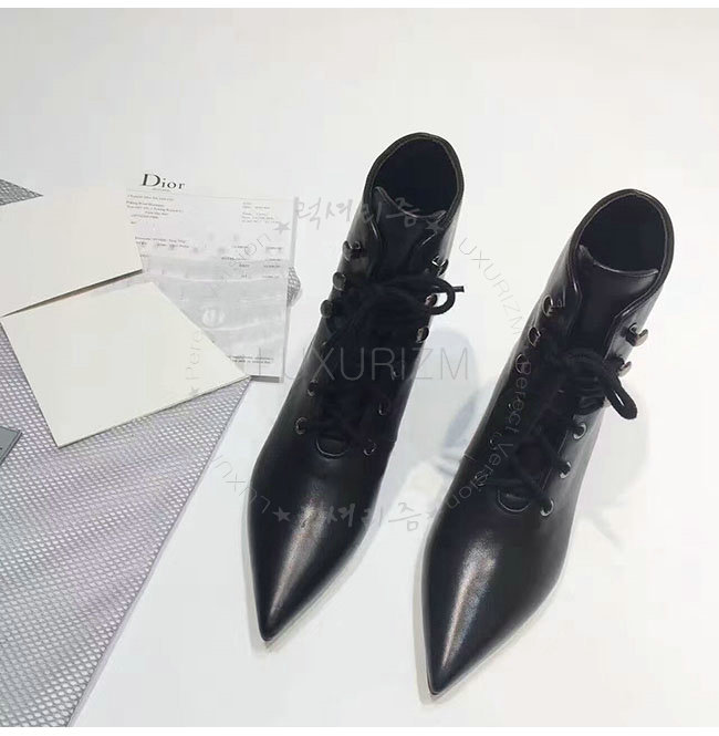 DIOR-KCI404 디올 블랙 양가죽 레이스 업 앵클 부츠 여성용