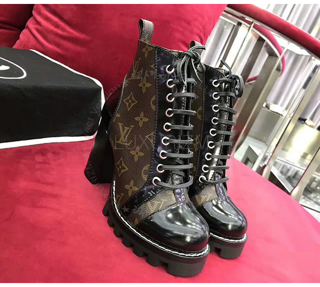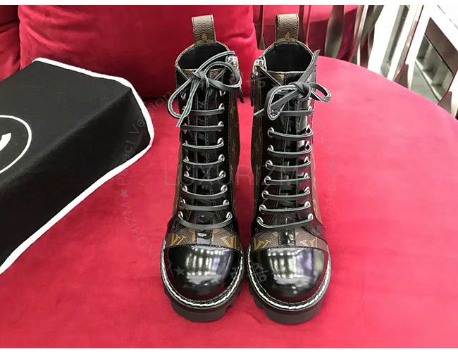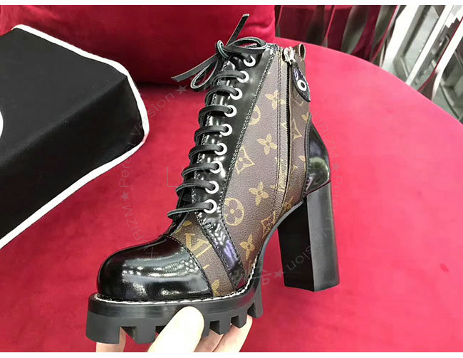 LOUIS VUITTON-1A2Y7W 루이비통 페이턴트 모노그램 캔버스 스타 트레일 앵클 부츠 여성용