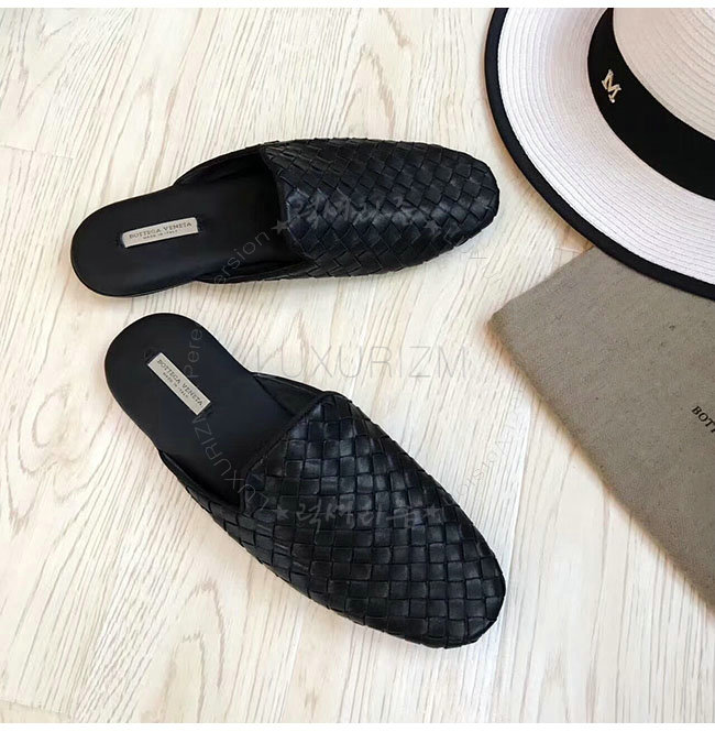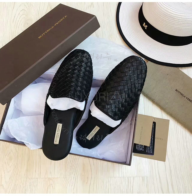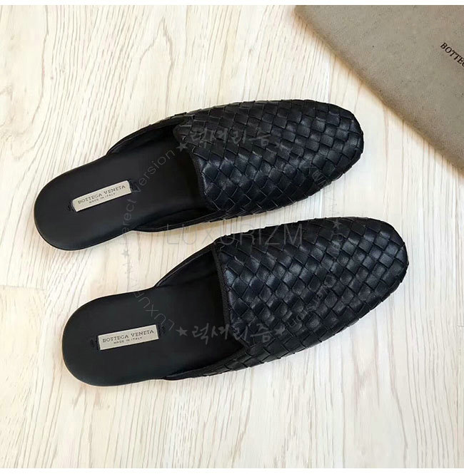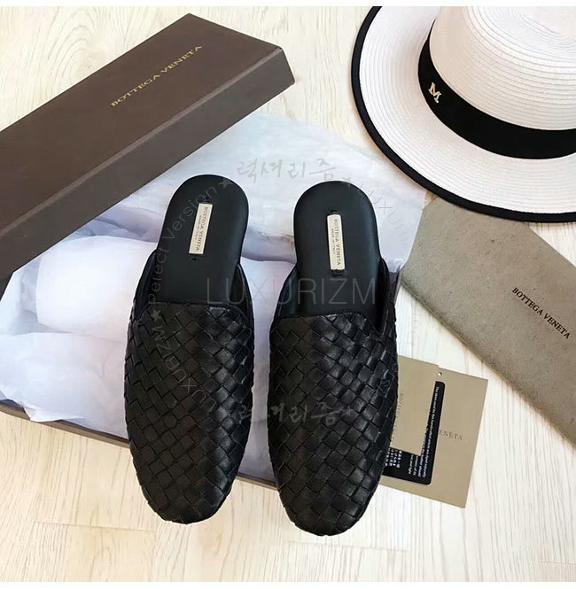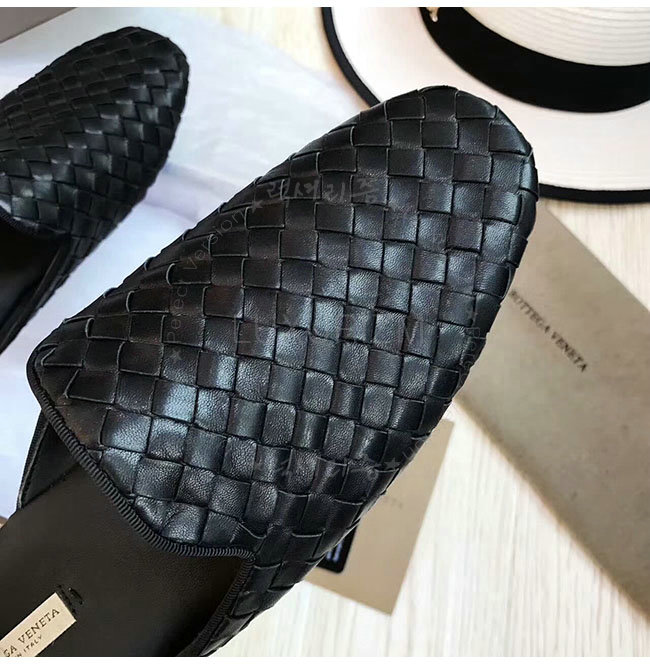 BOTTEGAVENETA-451862 보테가 베네타 블랙 인트레치아토 카프 피안드라 슬리퍼 여성용