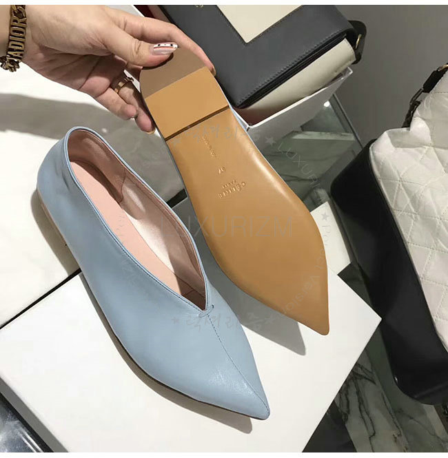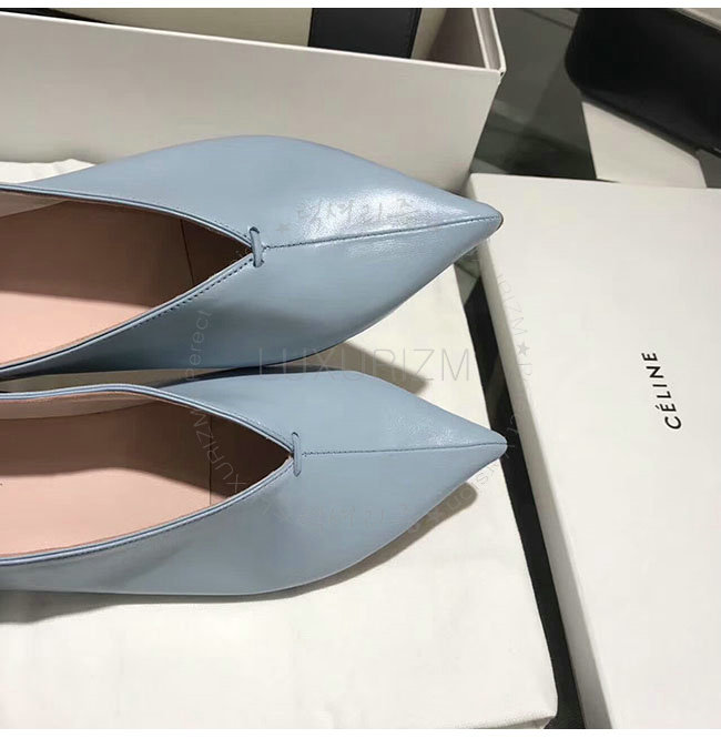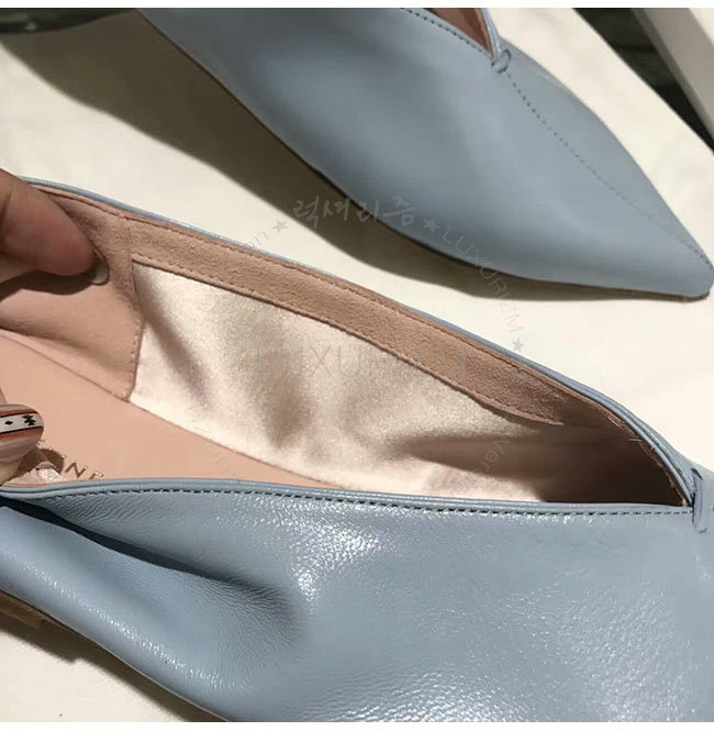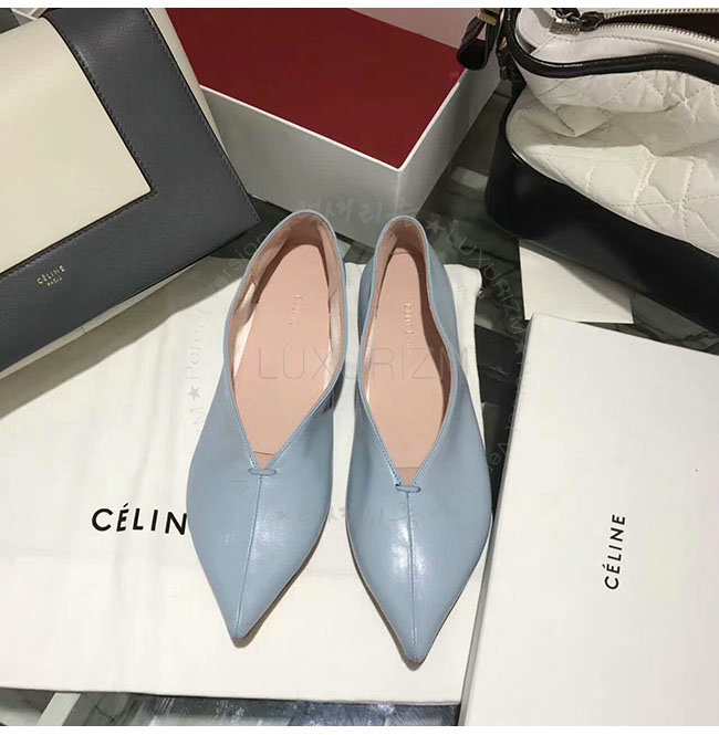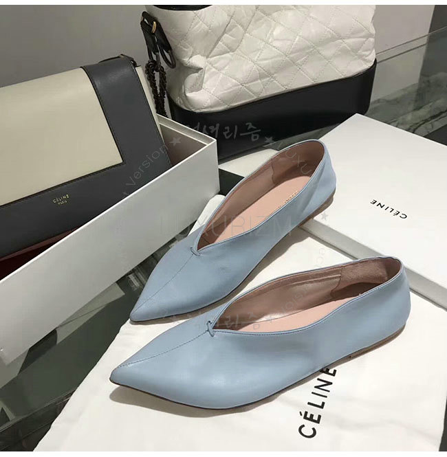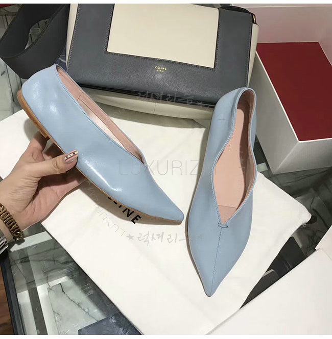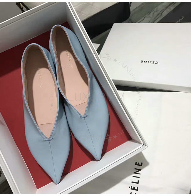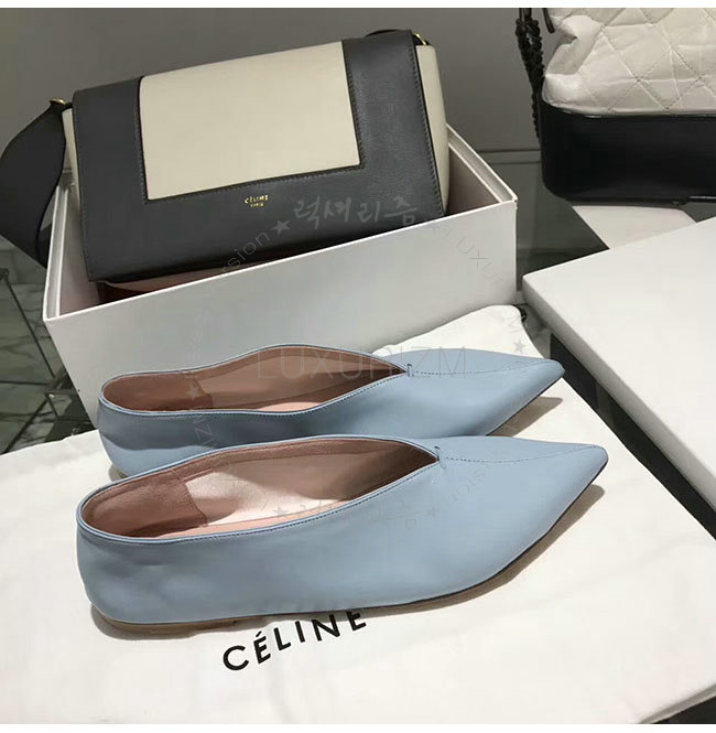 CELINE-319083 셀린느 V닉 연블루 카프스킨 플랫 여성용