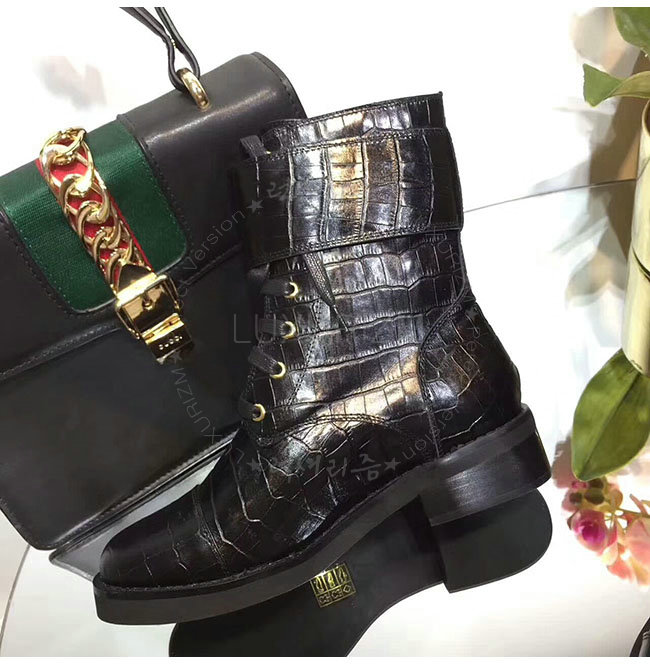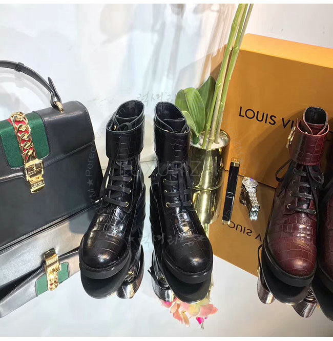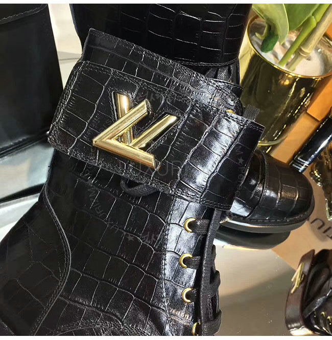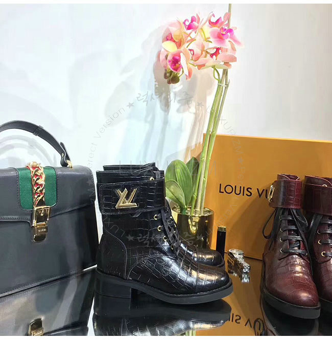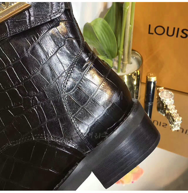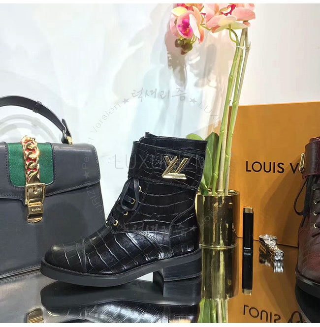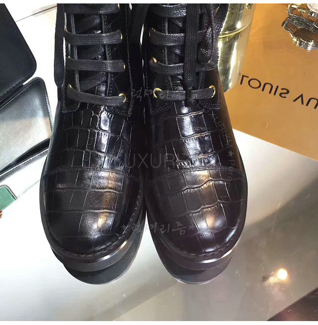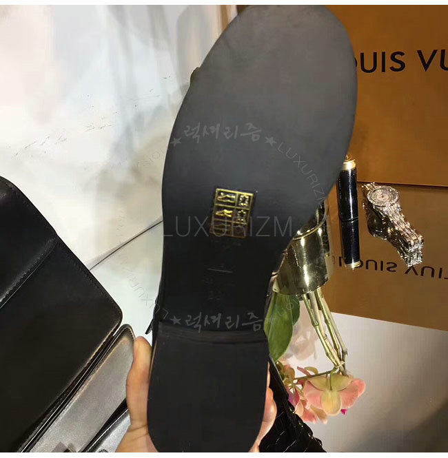 LOUIS VUITTON-1A2XKS 루이비통 악어무늬 블랙 가죽 원더랜드 플랫 레인저 여성용