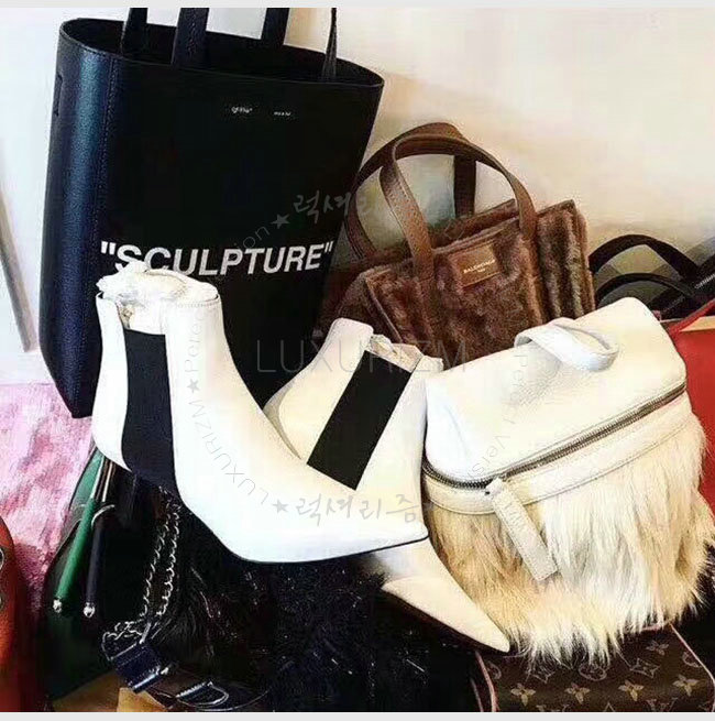 CELINE-321943 셀린느 화이트 카프스킨 밴딩 첼시 부츠 여성용