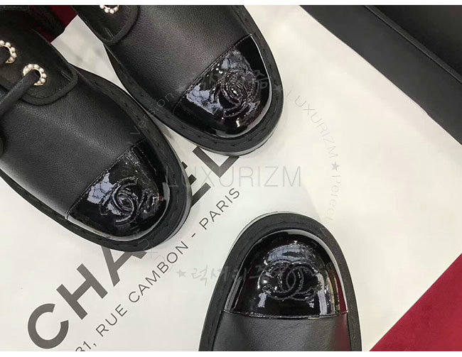 #홍콩명품신발추천 대한민국1등쇼핑몰 샤넬신발사이트 럭셔리즘 CHANEL-G33169 샤넬 블랙 페이턴트 카프스킨 쇼트 부츠 여성용