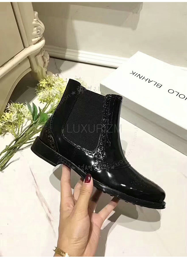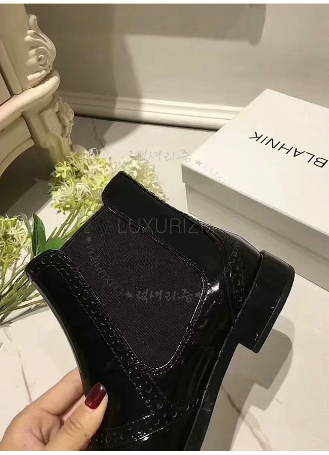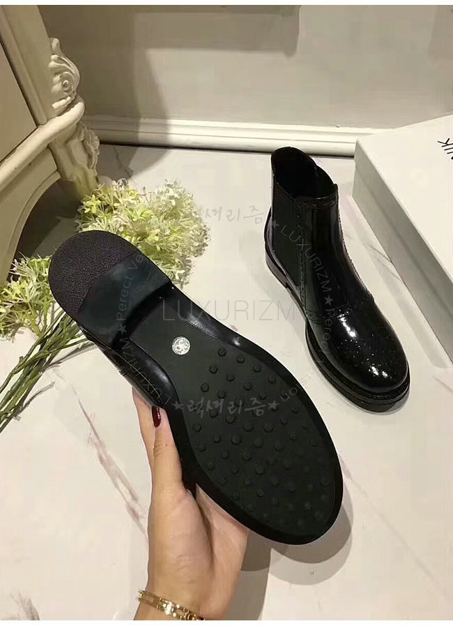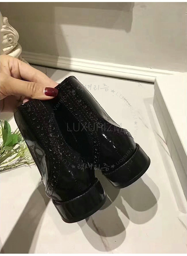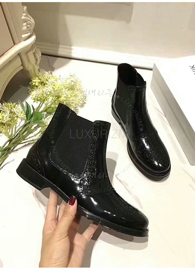 TODS-0ZP0V090 토즈 블랙 레이스 무늬 가죽 앵클 부츠 여성용