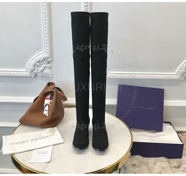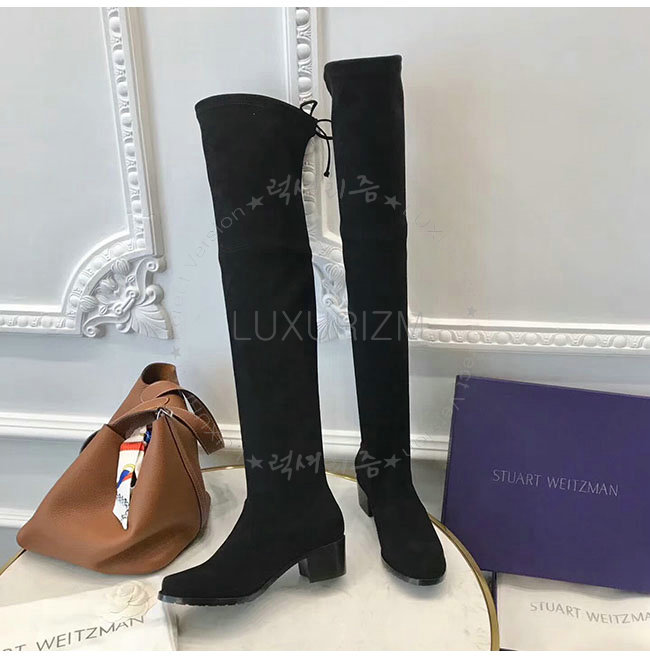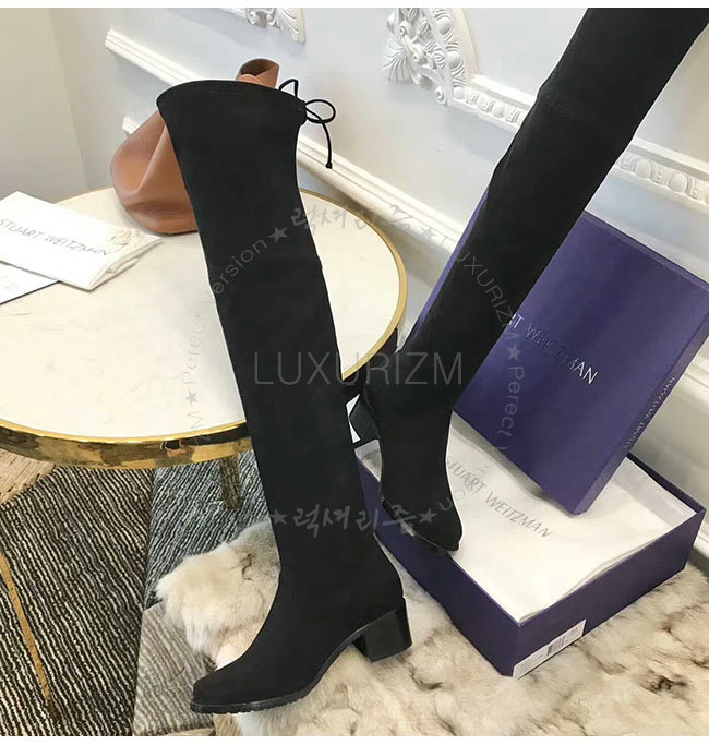STUART WEITZMAN 스튜어트 와이츠먼 블랙 스웨이드 미드랜드 부츠 여성용