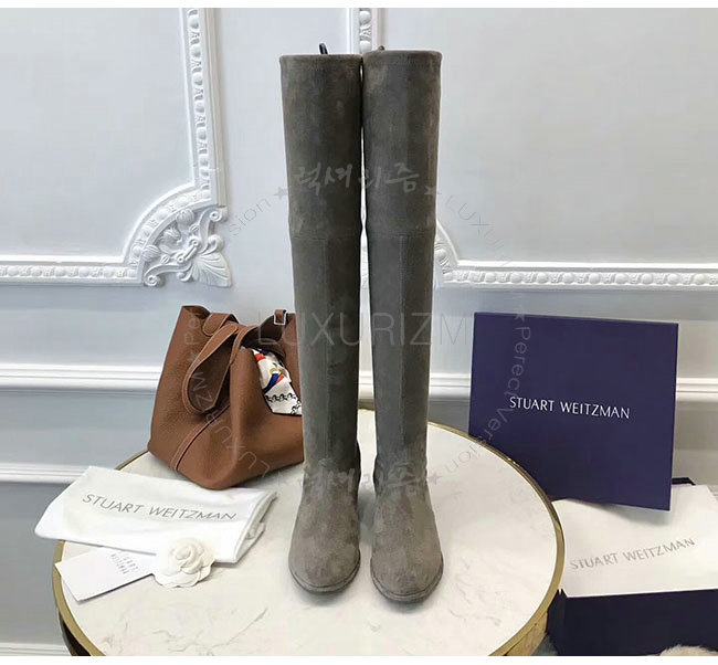 STUART WEITZMAN 스튜어트 와이츠먼 라이트 그레이 스웨이드 로우랜드 부츠 여성용