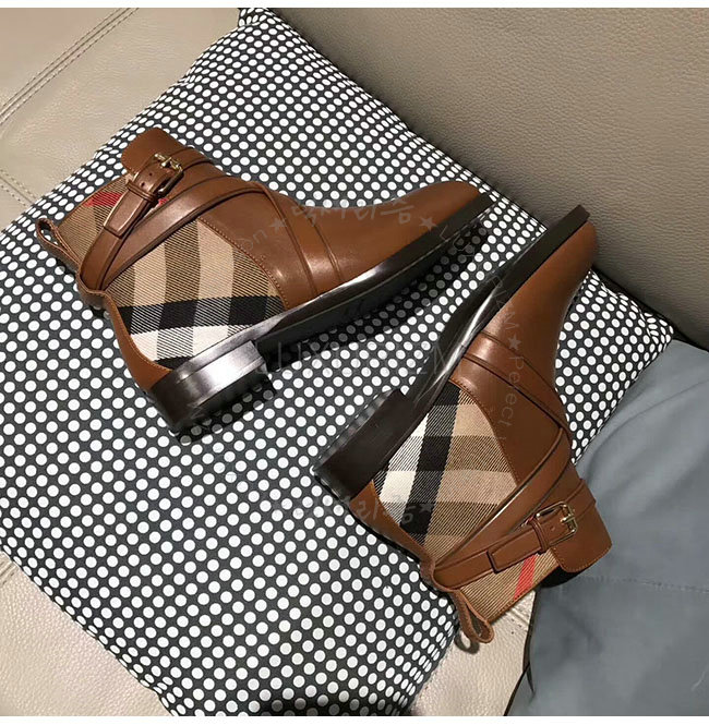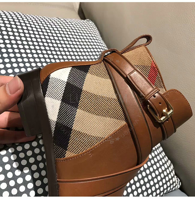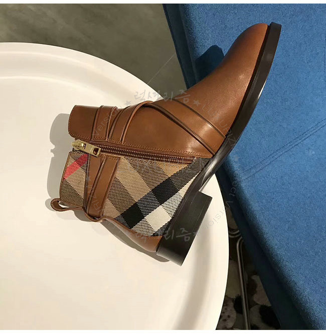 [스페셜오더]BURBERRYI-40364791 버버리 스트랩 디테일 하우스 체크 브라이트 카멜 가죽 앵클 부츠