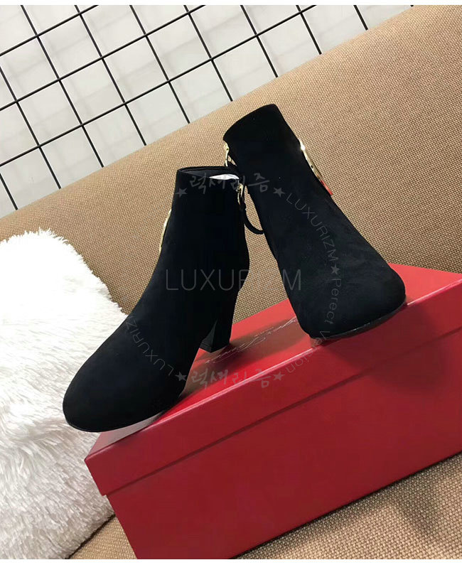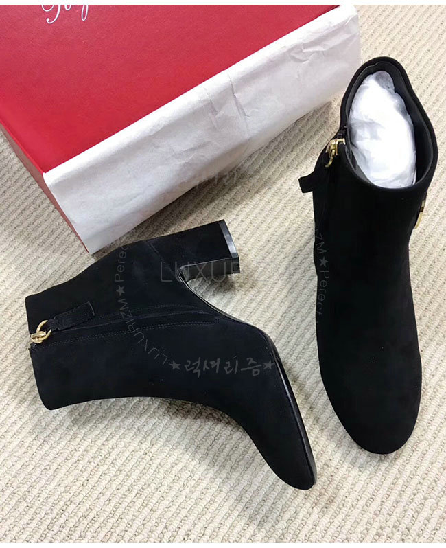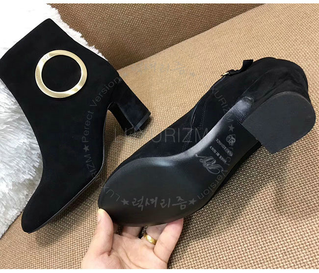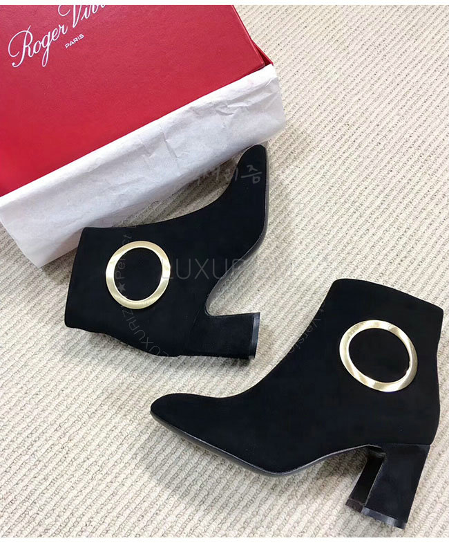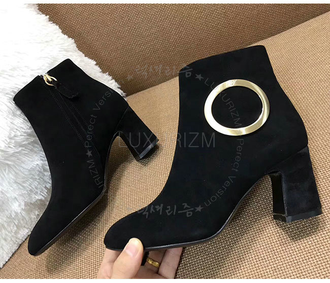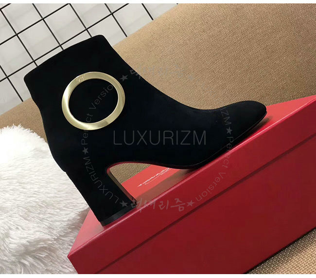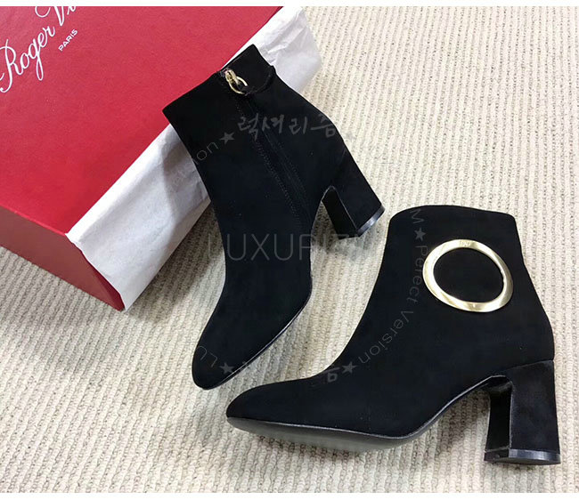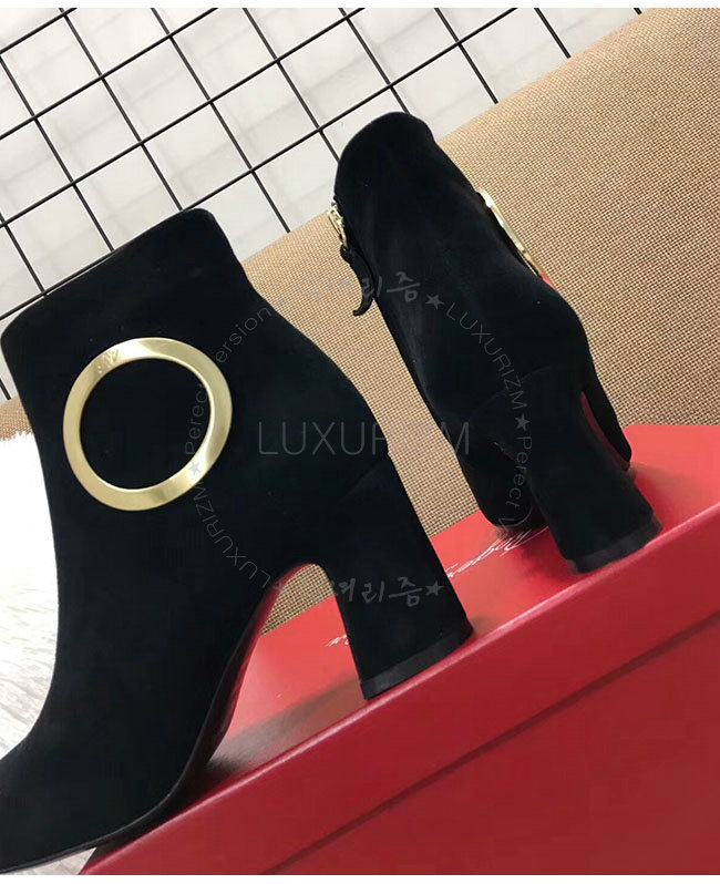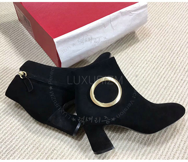 ROGER VIVIER-43717281O20 로저비비에 블랙 스웨이드 청키 트럼펫 라운드 버클 앵클 부츠 여성용