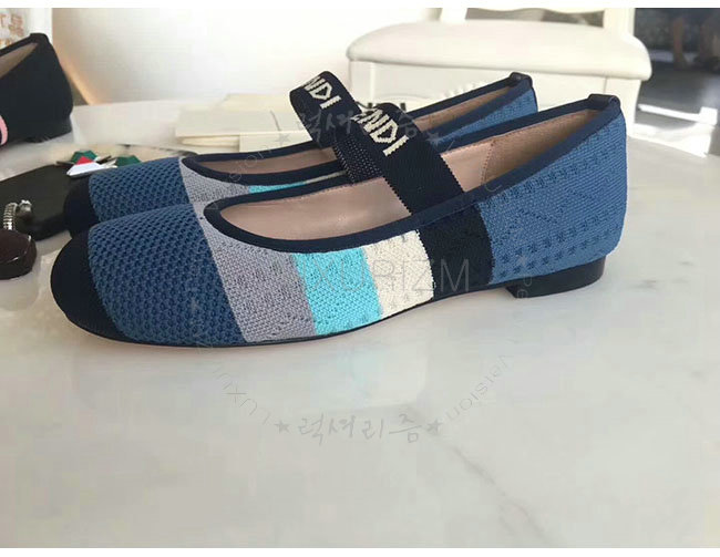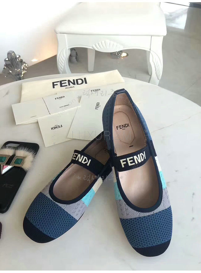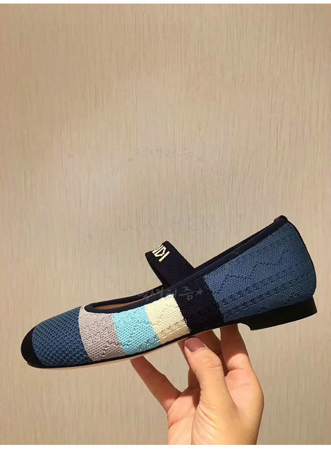 FENDI-8F65329 펜디 블루 스트레치 패브릭 로우 발레리나 여성용