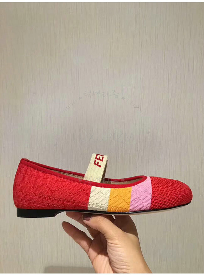 FENDI-8F65329 펜디 레드 스트레치 패브릭 로우 발레리나 여성용