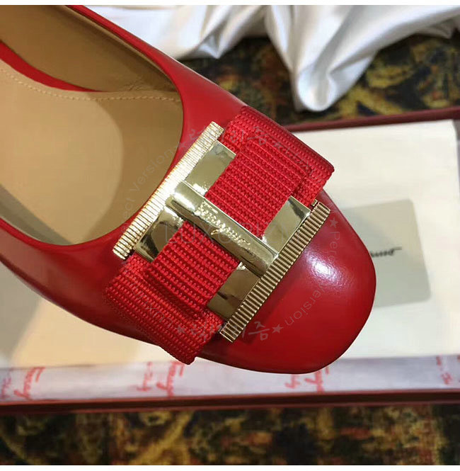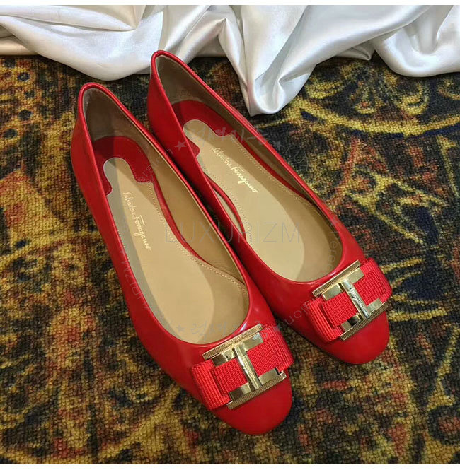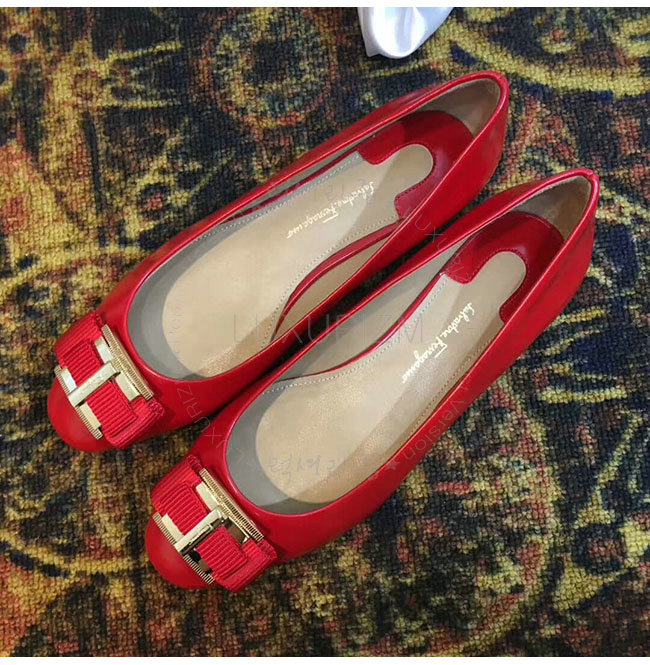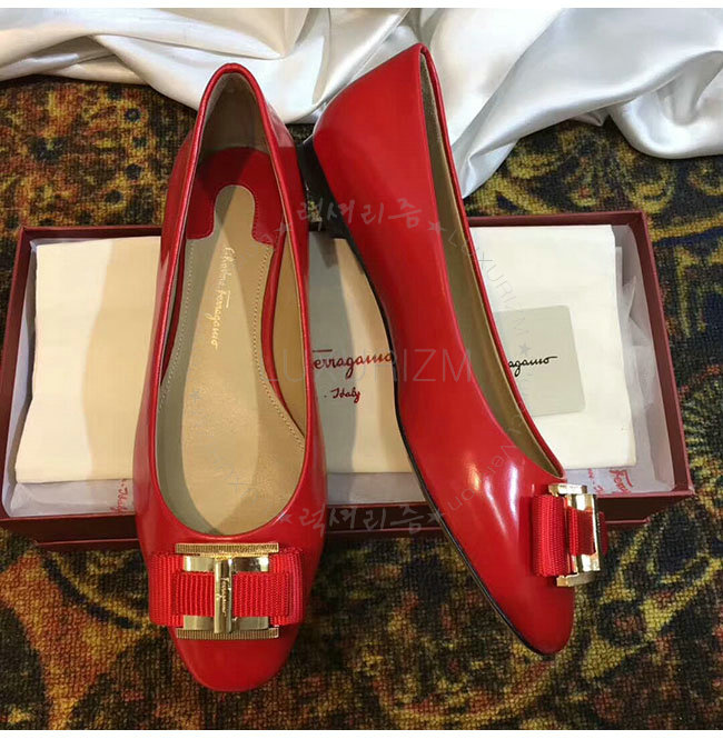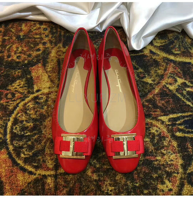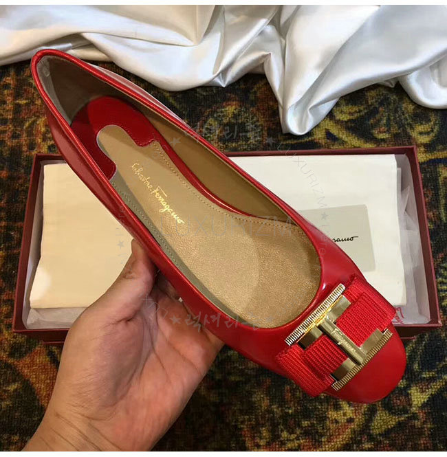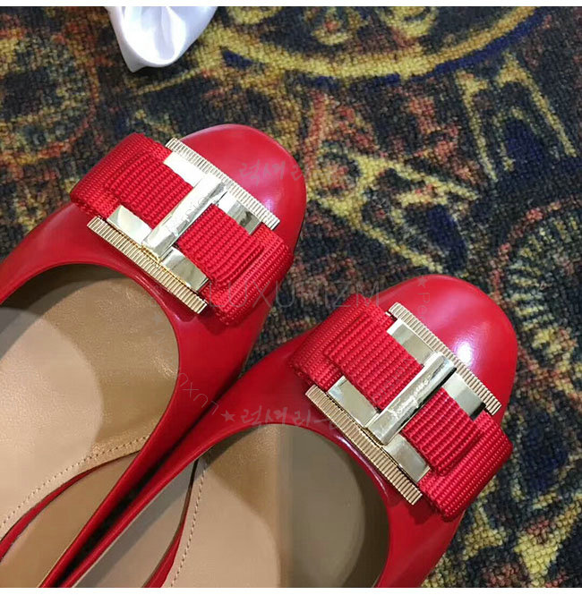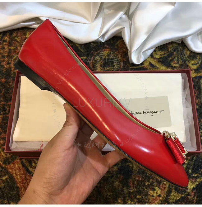 FERRAGAMO-01M670 페라가모 더블 보우 오나먼트 레드 발레리나 여성용