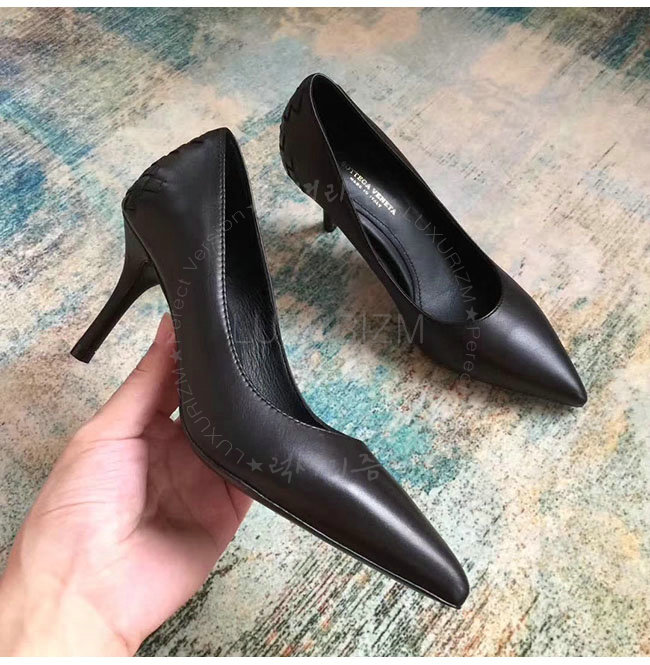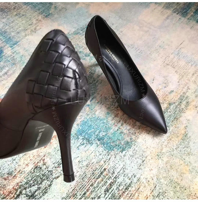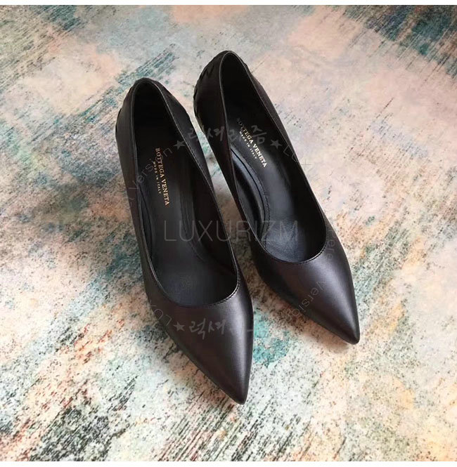 BOTTEGAVENETA-430385 보테가 베네타 블랙 네로 카프 인트레치아토 티피 펌프스 여성용