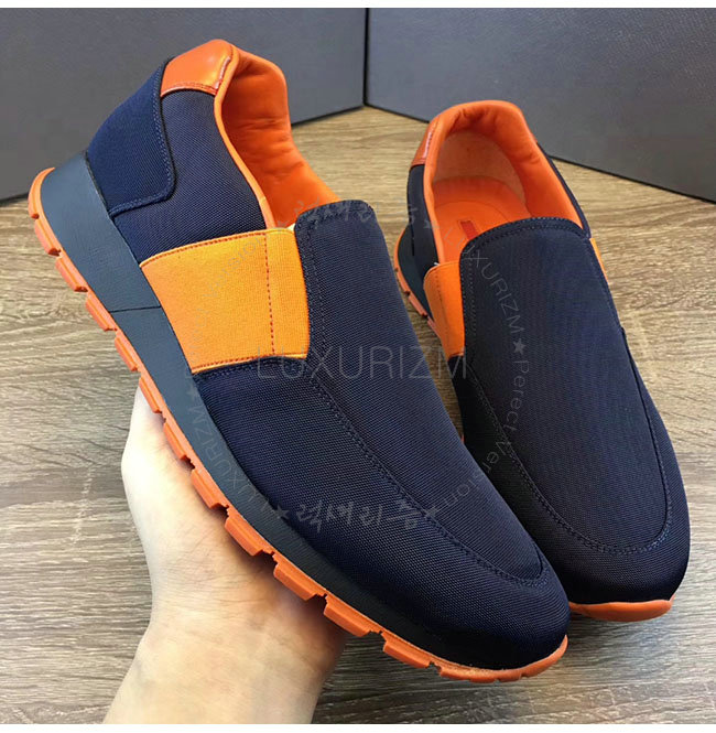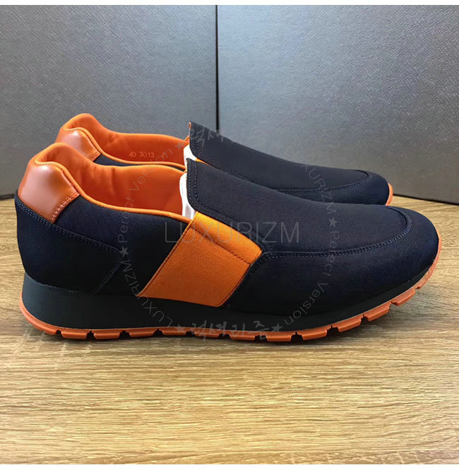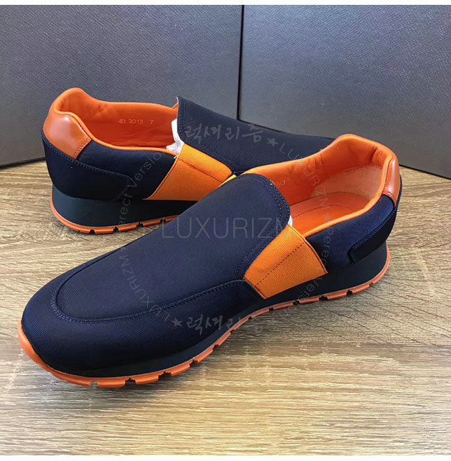 PRADA-4D3013 프라다 오렌지 네이비 기능성 패브릭 슬립온 스니커즈 남성용