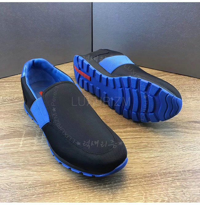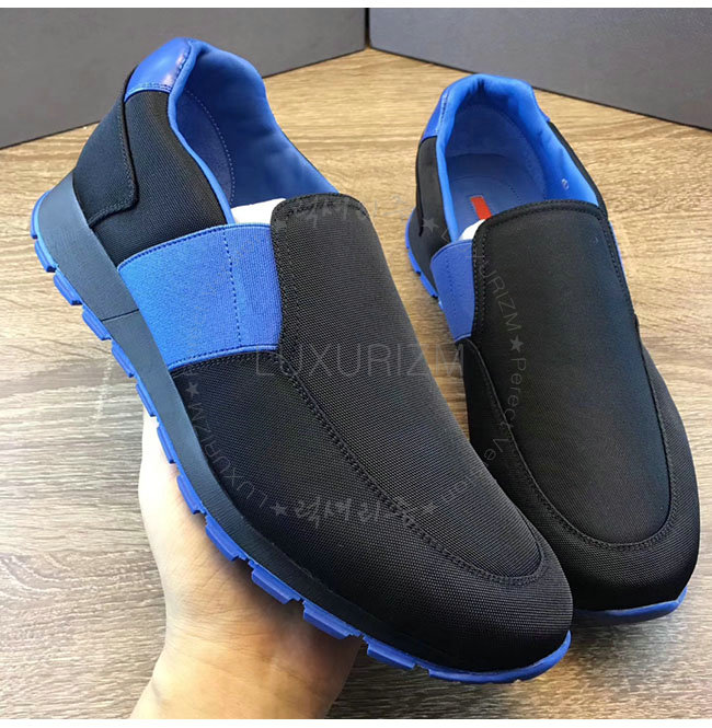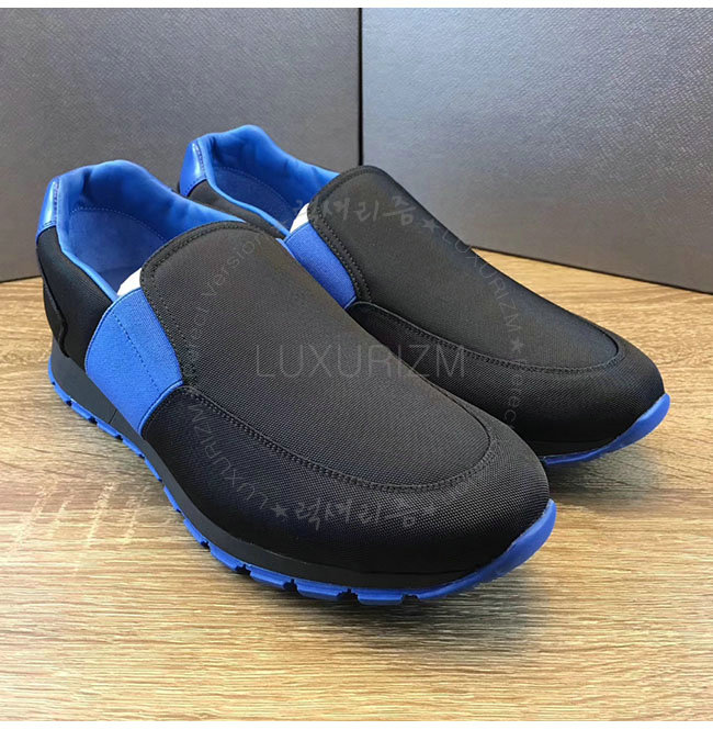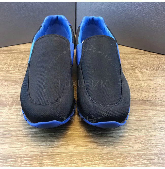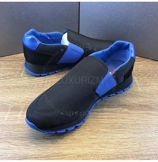 PRADA-4D3013 프라다 블루 블랙 기능성 패브릭 슬립온 스니커즈 남성용