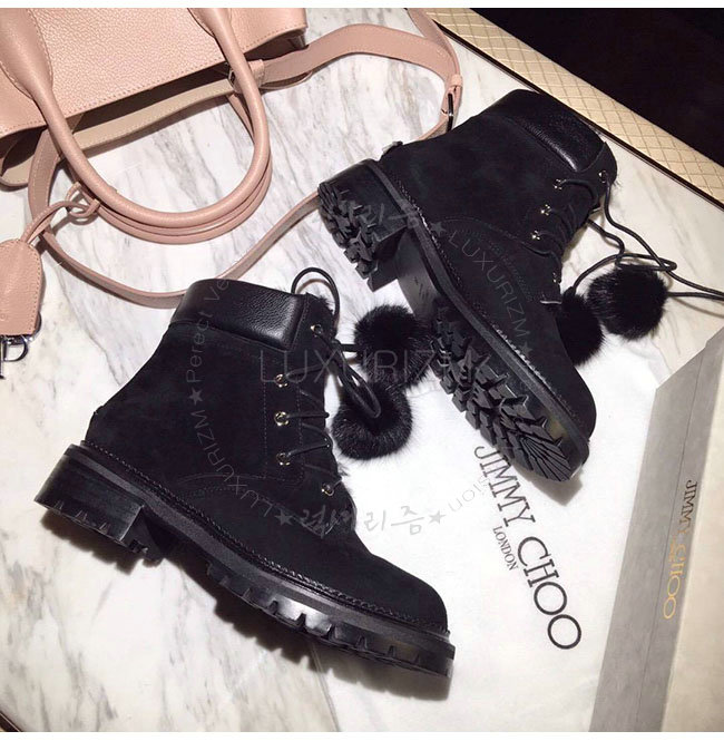 JIMMY CHOO- ELBAFLA 지미추 밍크 스웨이드 가죽 엘바 플랫 앵클 부츠 여성용