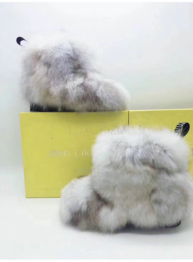 JIMMY CHOO-DALTON 지미추 화이트 여우털 달톤 플랫 부츠 여성용