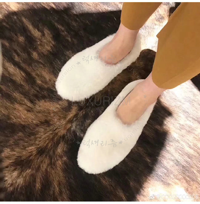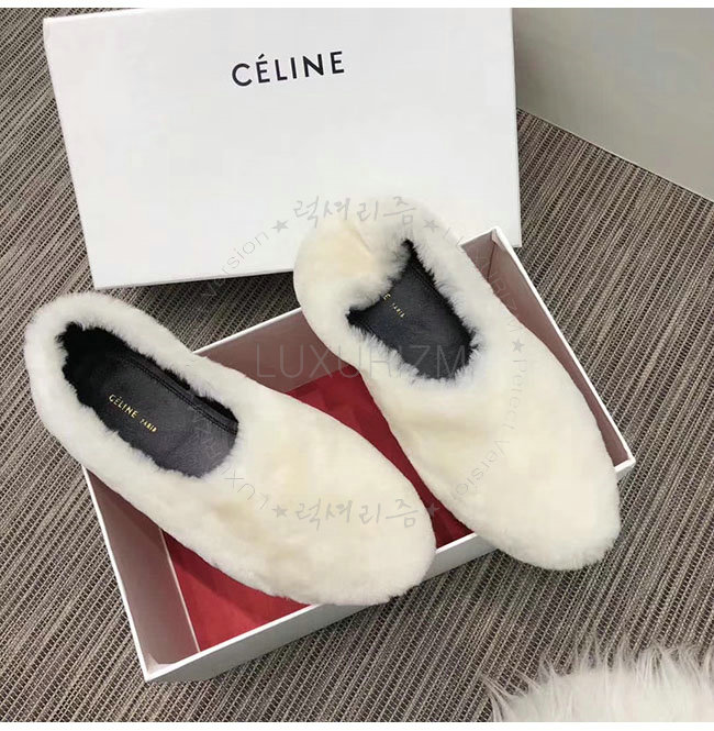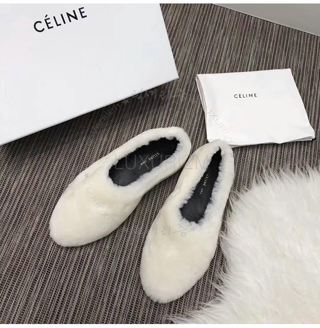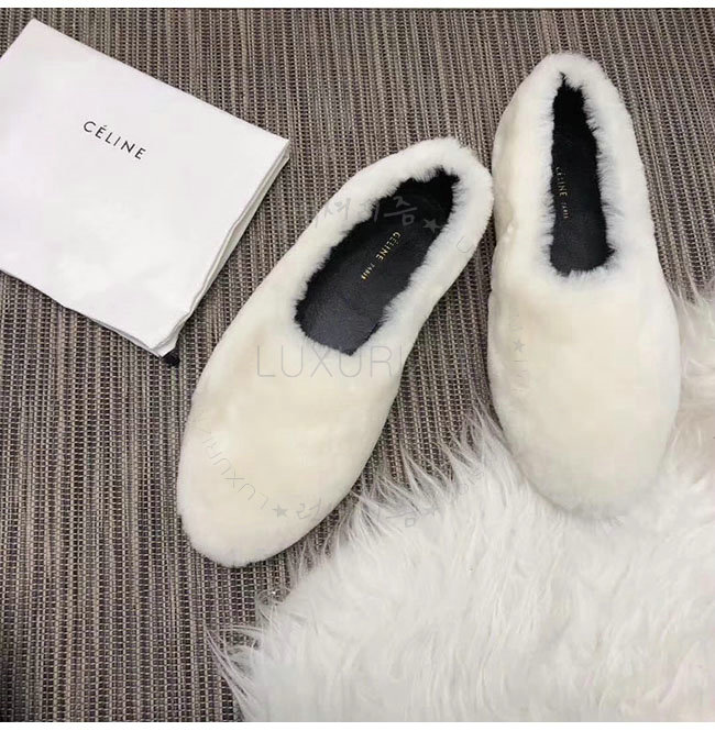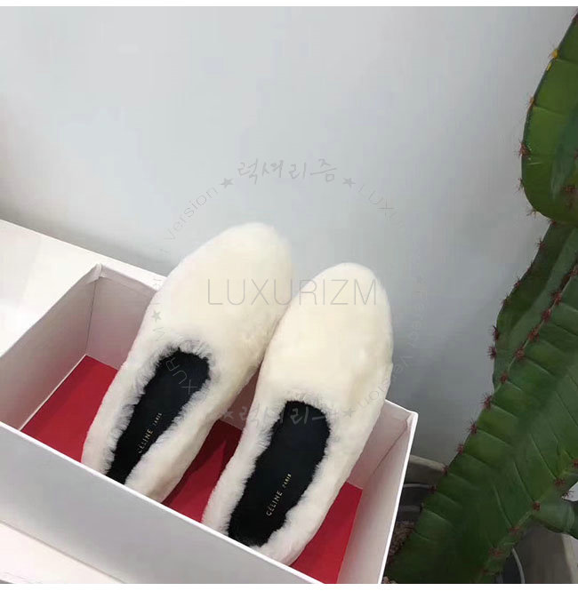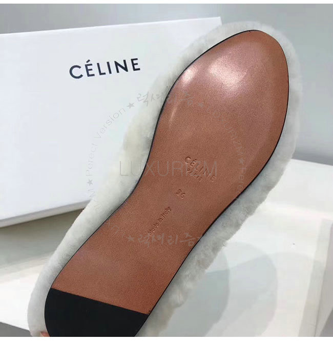CELINE-325113 셀린느 화이트 시어링 코지 플랫 여성용