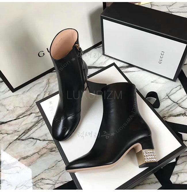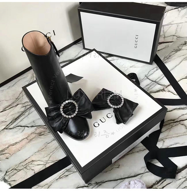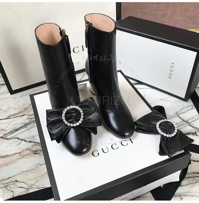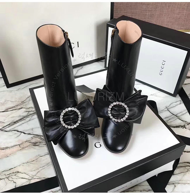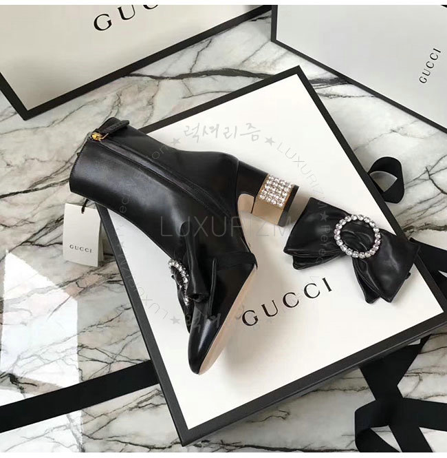 [스페셜오더]GUCCI-481171 1000 구찌 블랙 램스킨 탈착 가능 리본 장식 앵클 부츠 여성용