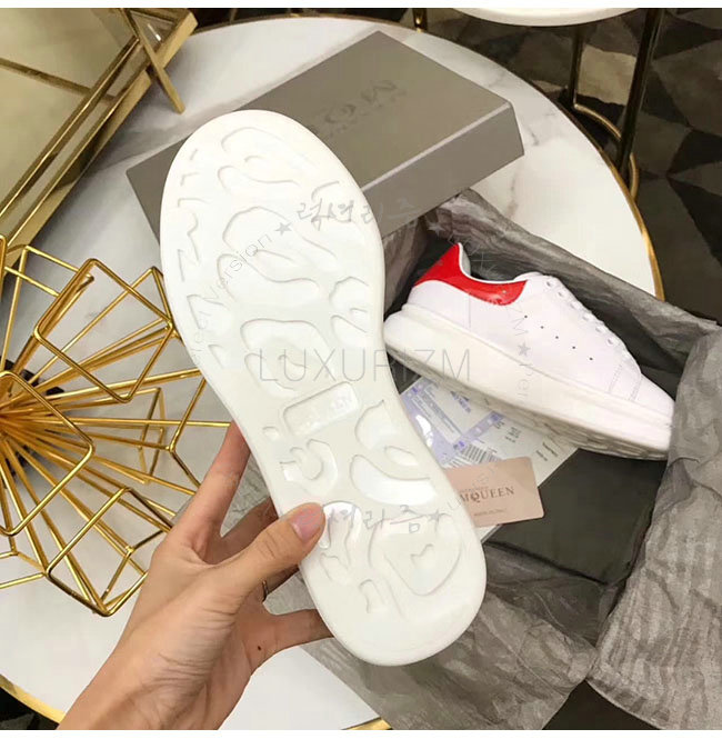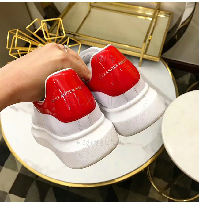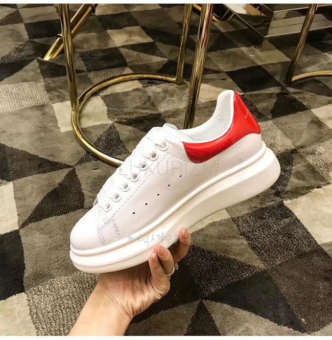 ALEXANDER MCQUEEN-462214 알렉산더 맥퀸 오버솔 화이트 레드 가죽 스니커즈 남녀공용