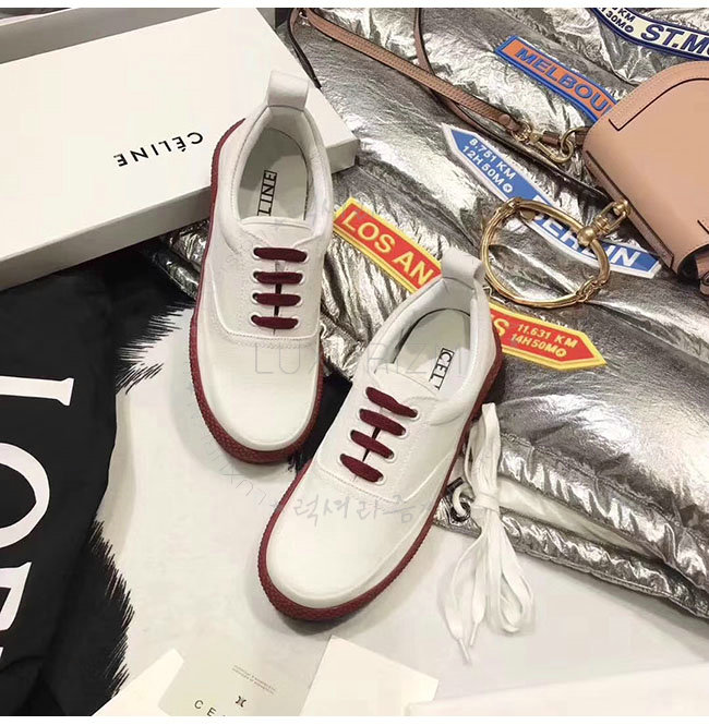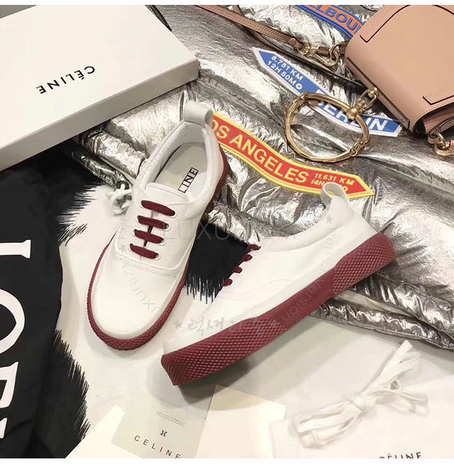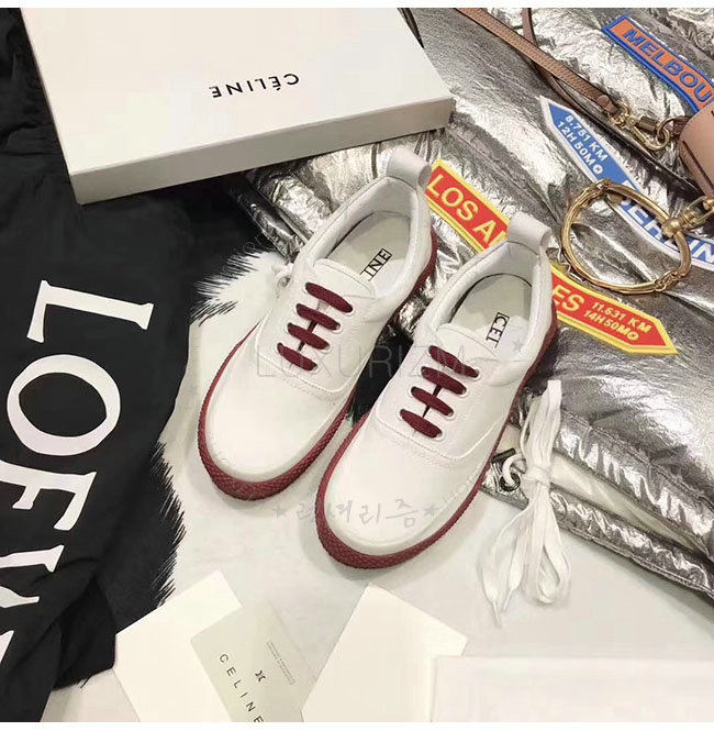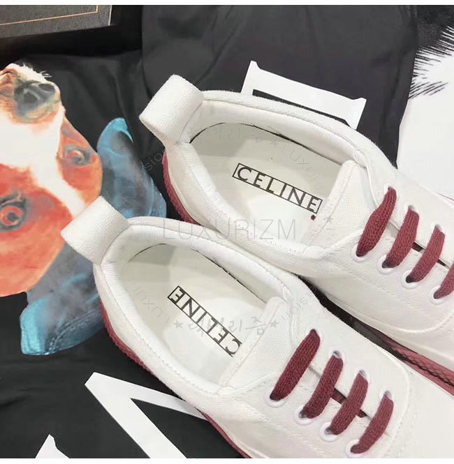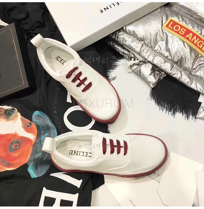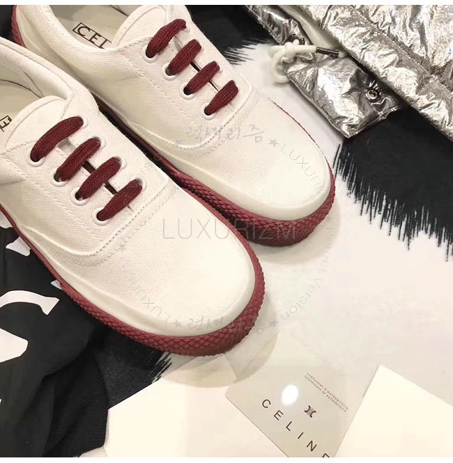 CELINE-323982 셀린느 캔버스 레드 레이스 업 스니커즈 여성용