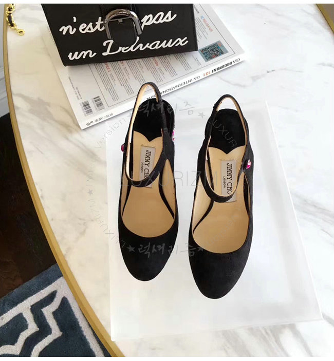 JIMMY CHOO-MEAGAN 지미추 연핑크 스웨이드 가죽 라운드 투 메간 장식 힐 펌프스 여성용 가격 : 250,000원