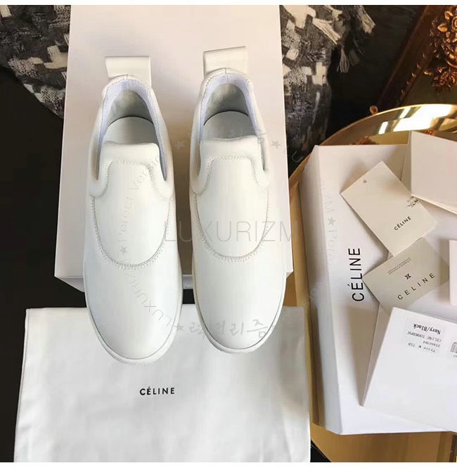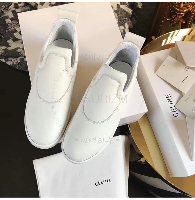 CELINE-314533 셀린느 풀온 화이트 램스킨 슬립온 스니커즈 여성용