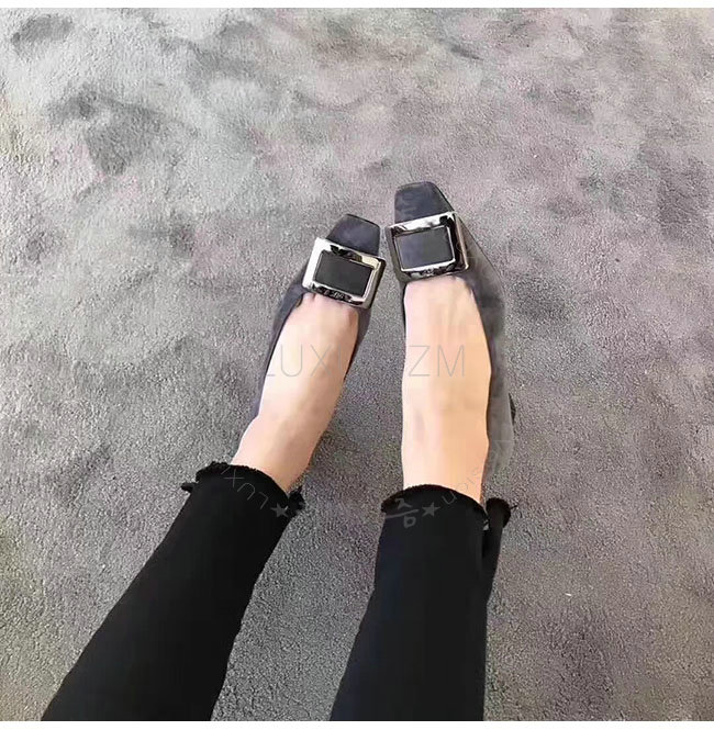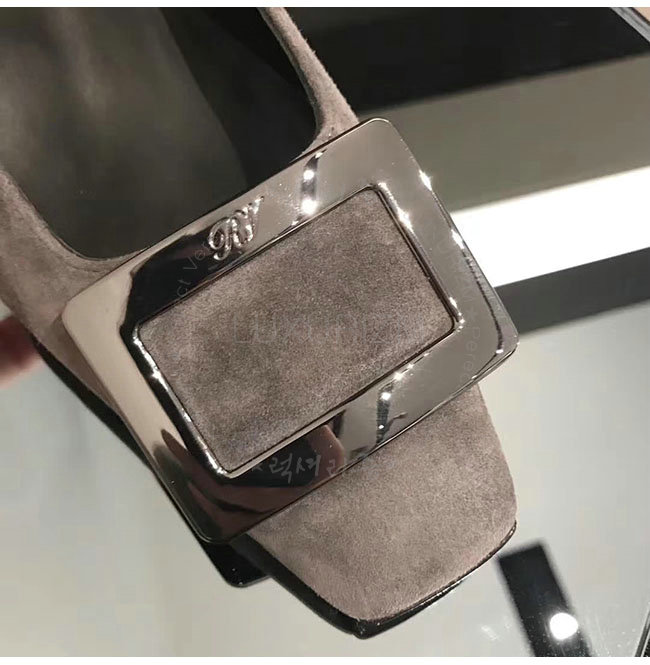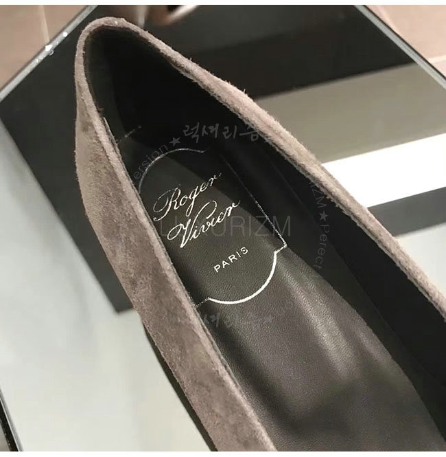 ROGER VIVIER-00600920 로저비비에 그레이 스웨이드 양가죽 벨 비벌 펌프스 여성용