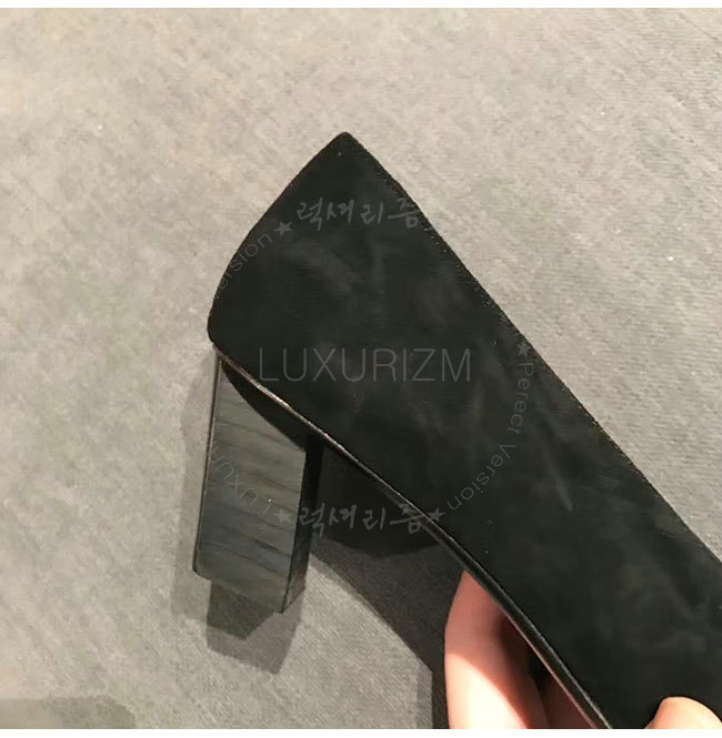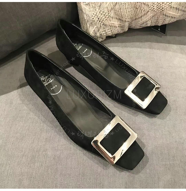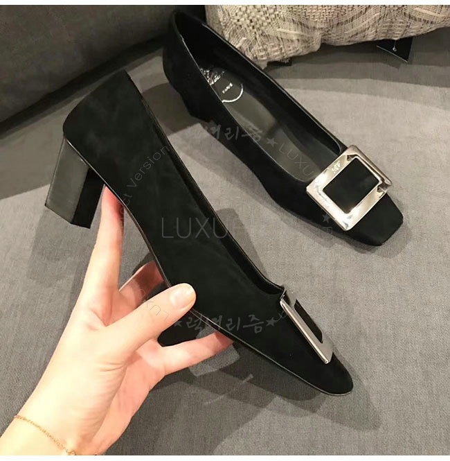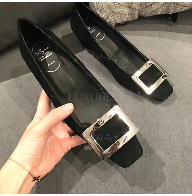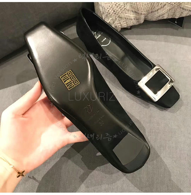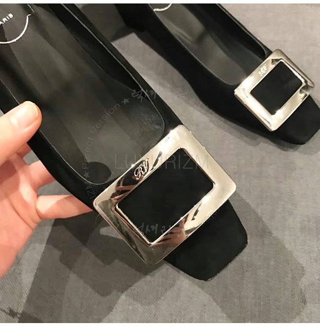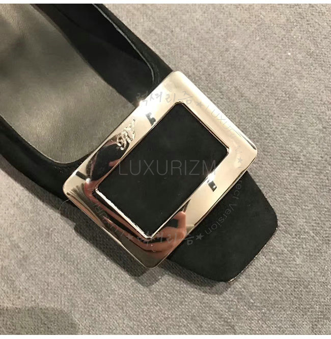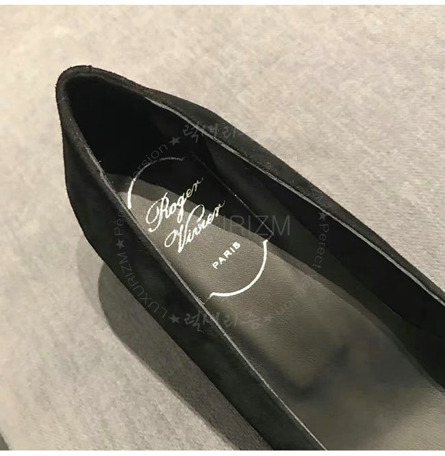 ROGER VIVIER-00600920 로저비비에 블랙 스웨이드 양가죽 벨 비벌 펌프스 여성용