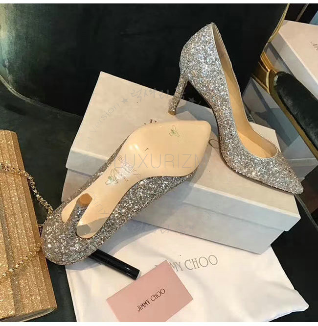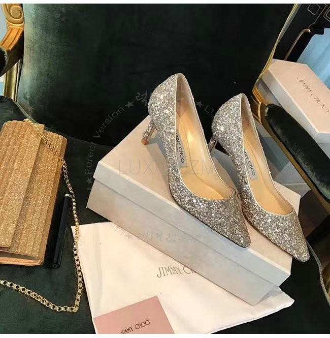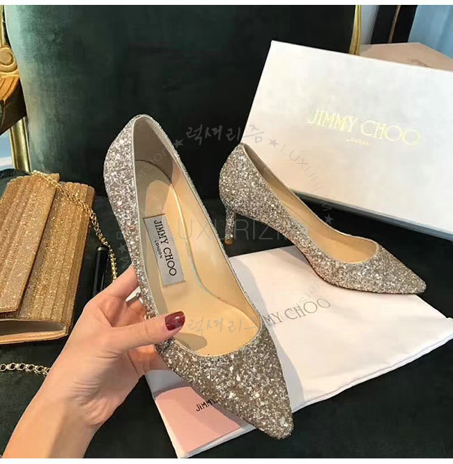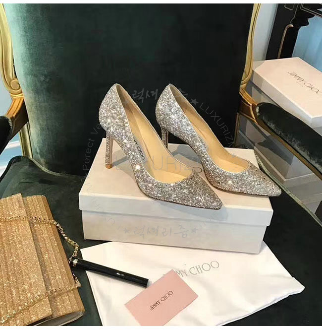 JIMMY CHOO-ROMY 지미추 화이트 글리터 패브릭 로미 펌프스 여성용 (2종류)