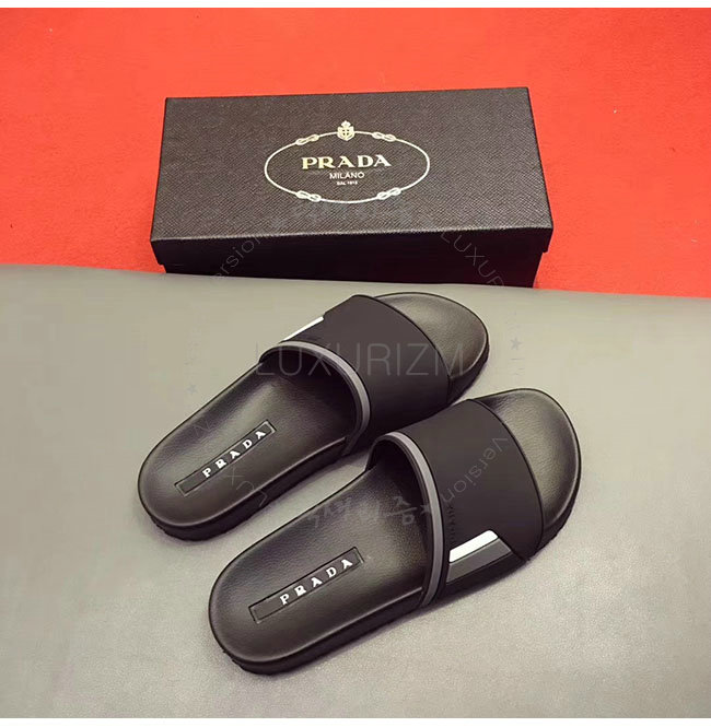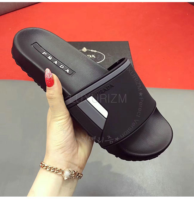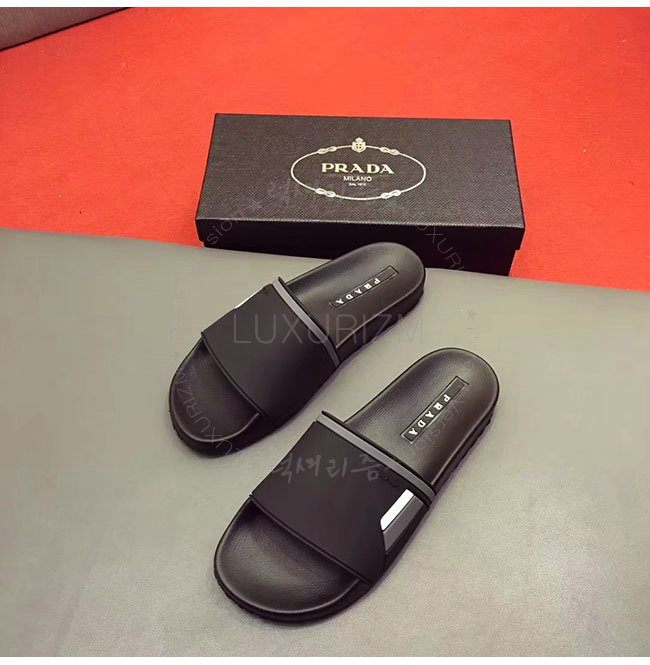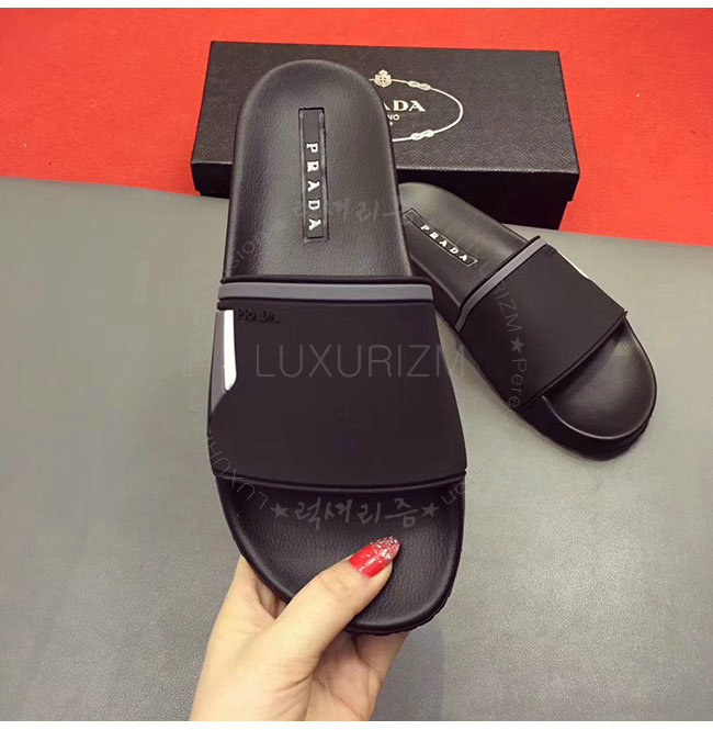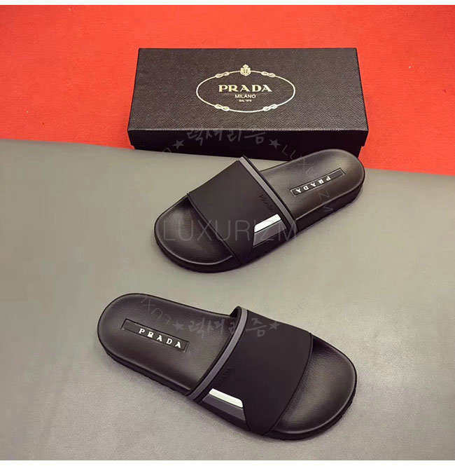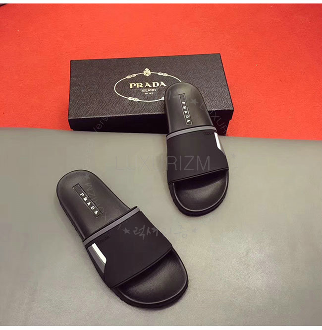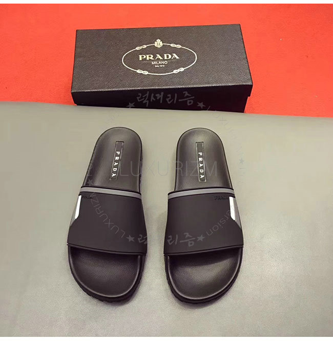 PRADA-4X3102 프라다 블랙 고무 슬라이드 슬리퍼 남성용