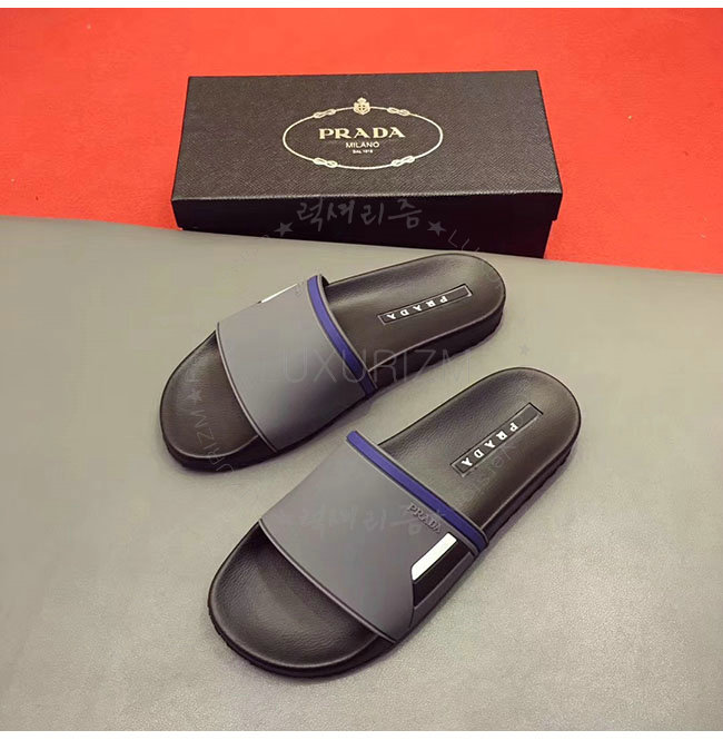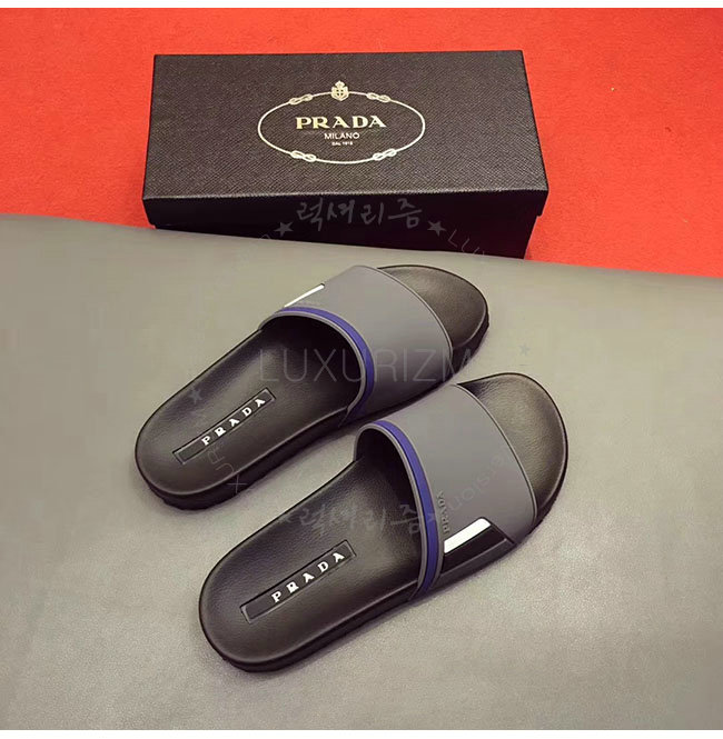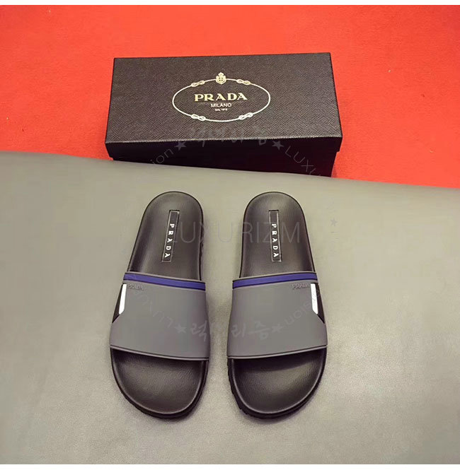 PRADA-4X3102 프라다 그레이 고무 슬라이드 슬리퍼 남성용