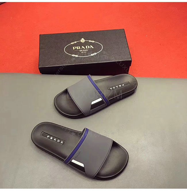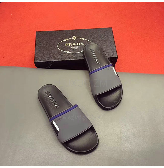 PRADA-4X3102 프라다 블랙 고무 슬라이드 슬리퍼 남성용