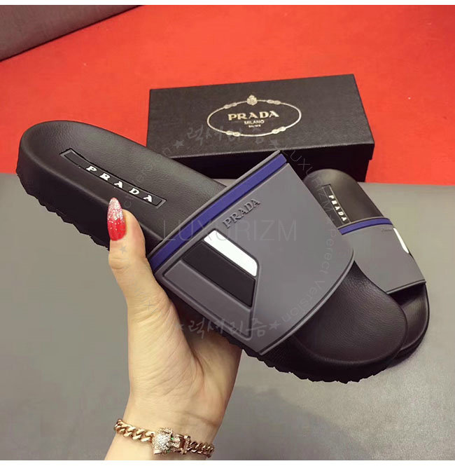 PRADA-4X3102 프라다 퍼플 고무 슬라이드 슬리퍼 남성용