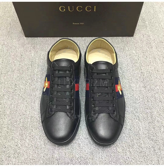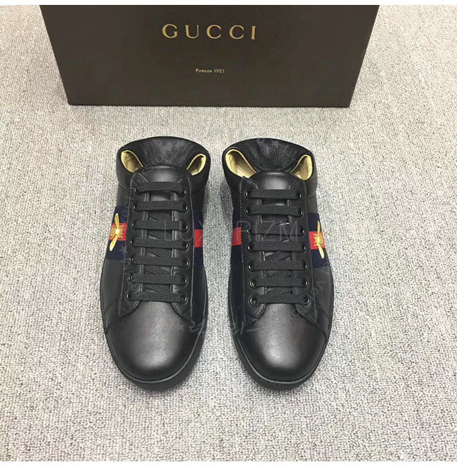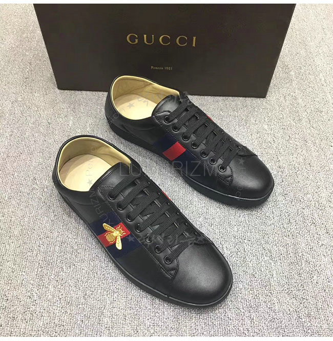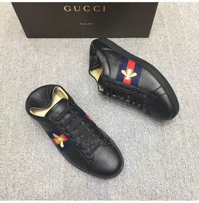 GUCCI-473762 1066 구찌 에이스 블랙 송아지가죽 로우탑 스니커즈 남성용