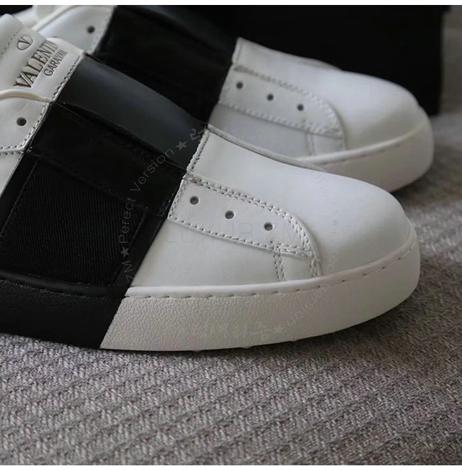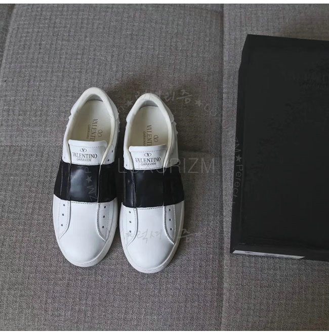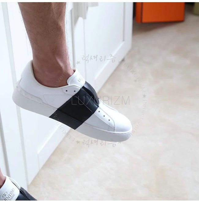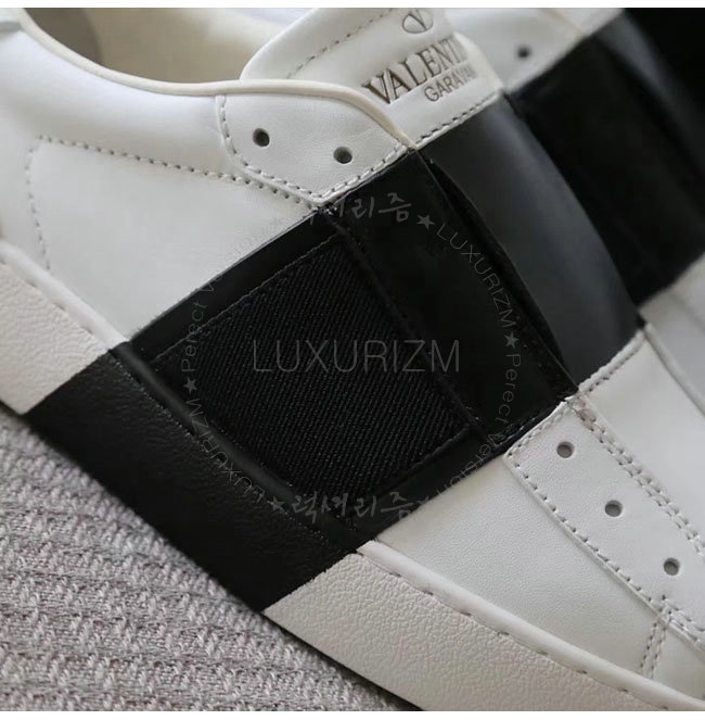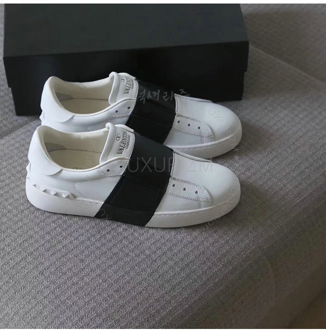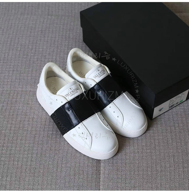 VALENTINO-2S0938 발렌티노 엘라스틱 밴드 화이트 블랙 가죽 스니커즈 남녀공용