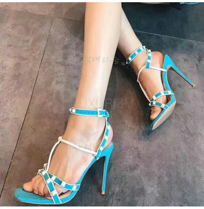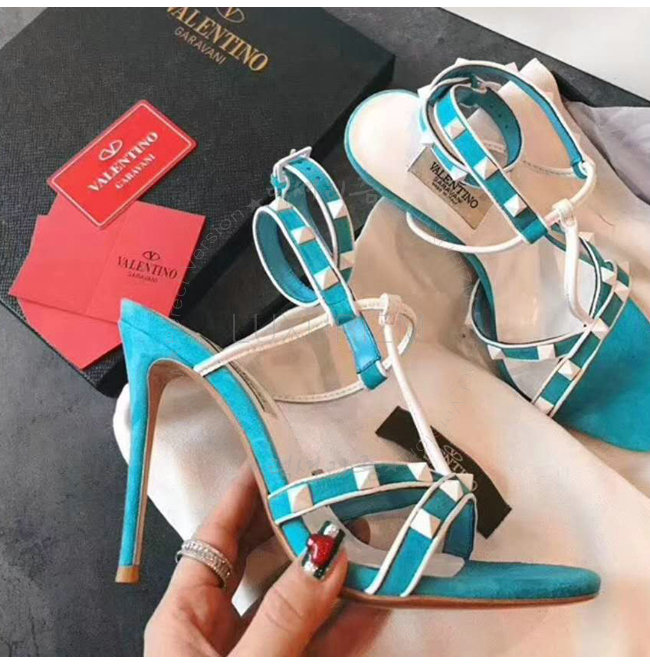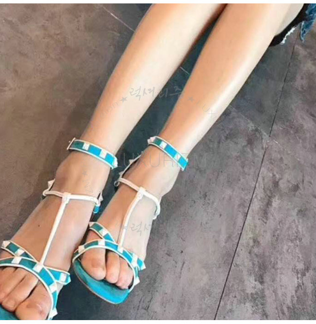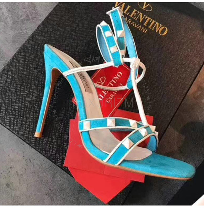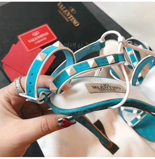 VALENTINO-PW2S0F14 발렌티노 스웨이드 가죽 블루 프리 락스터드 샌들