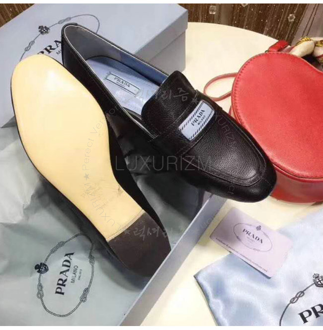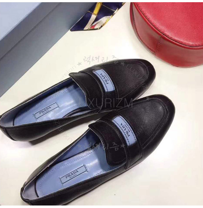 PRADA-1D485I 프라다 송아지 가죽 블랙 에티켓 모카신