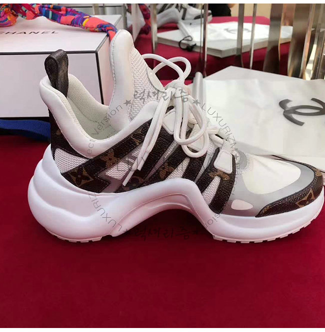 2018 봄-여름 패션쇼에서 단연 돋보인 LV 아치라이트 스니커즈입니다. 미래주의적인