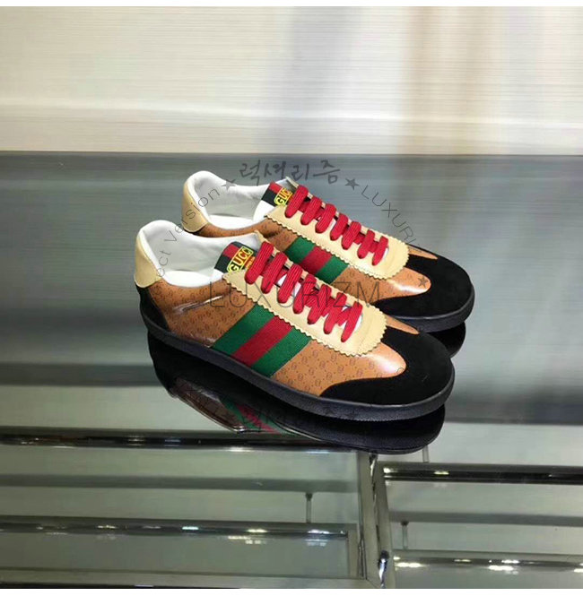 GUCCI-538713 1065 구찌 브라운 GG 가죽 Gucci-Dapper Dan 스니커즈