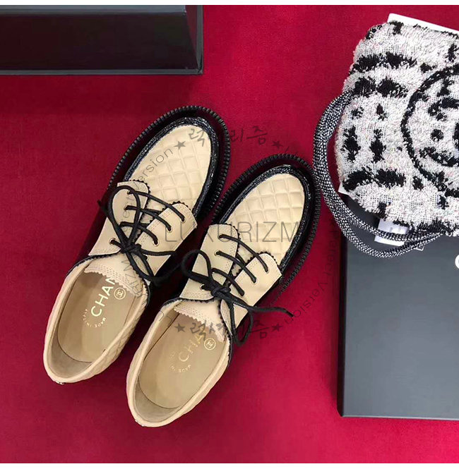 CHANEL-G33845 샤넬 베이지 램스킨 레이스업