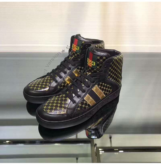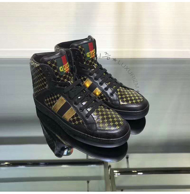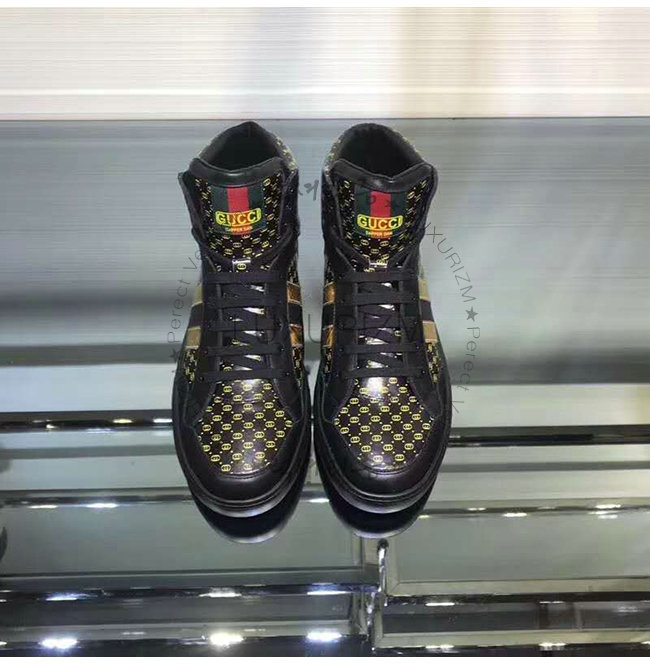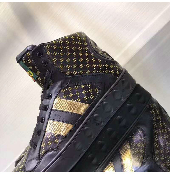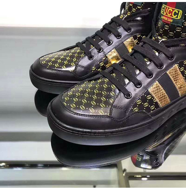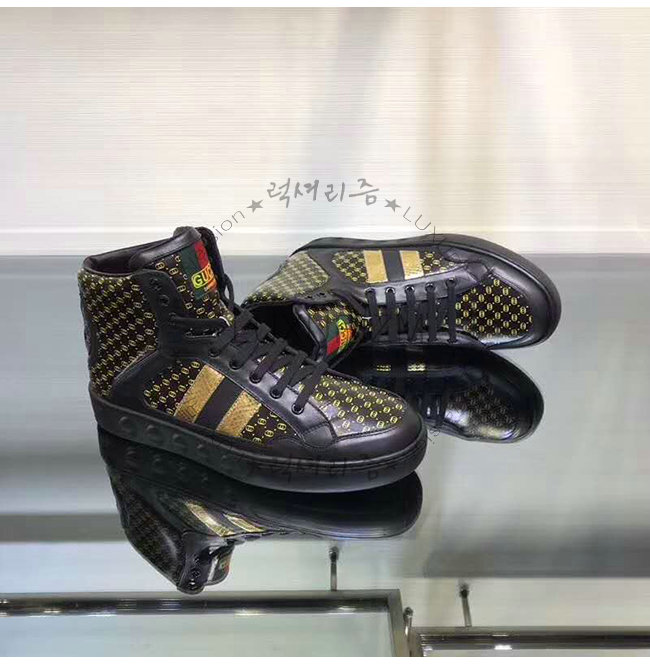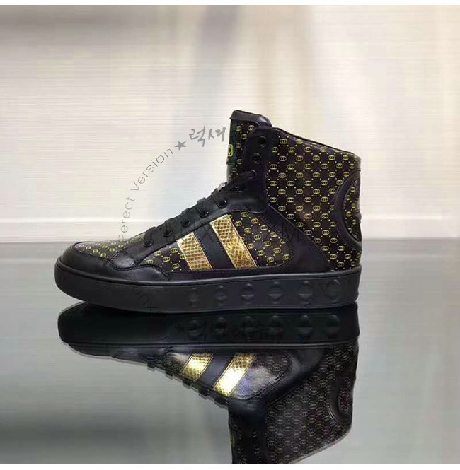 [스페셜오더]GUCCI-536839 1090 구찌 블랙 GG 가죽 Gucci Dapper Dan 하이탑 스니커즈
