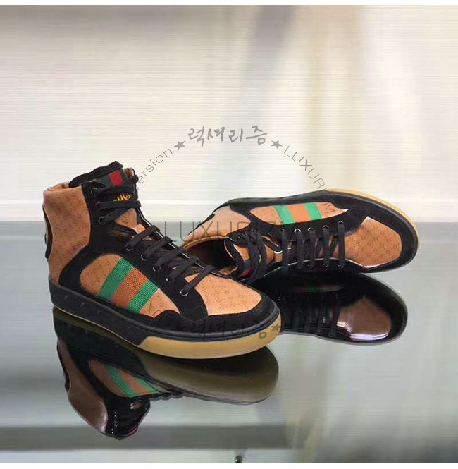 [스페셜오더]GUCCI-536839 1090 구찌 블랙 GG 가죽 Gucci Dapper Dan 하이탑 스니커즈 가격 : 300,000원