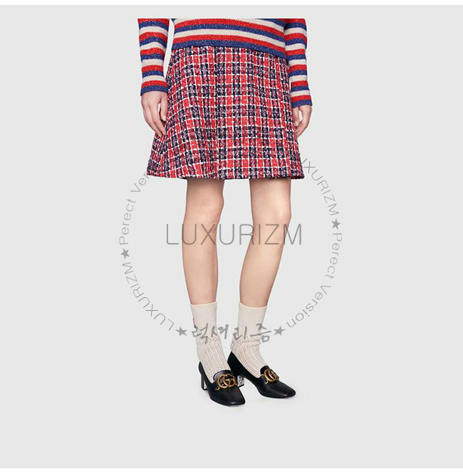 GUCCI-525333 6433 구찌 빅토아르 레드 가죽 더블 G 장식 미드힐 펌프스 가격 : 250,000원