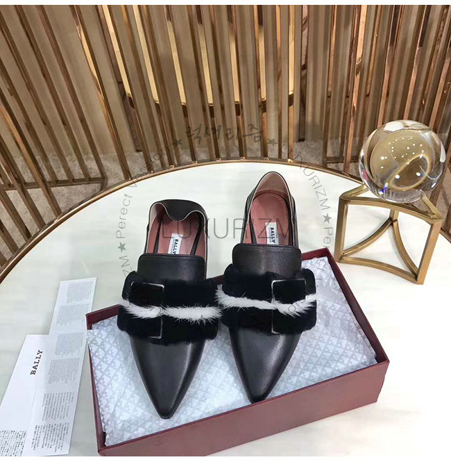 BALLY- 6223320 발리 블랙 카프스킨 펄 장식 HAMELIA 플랫 슈즈