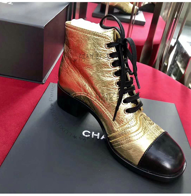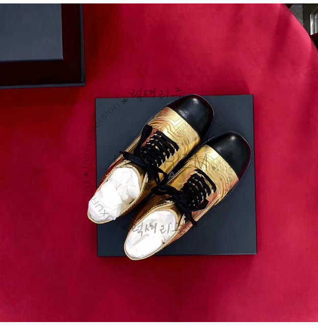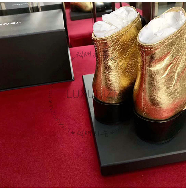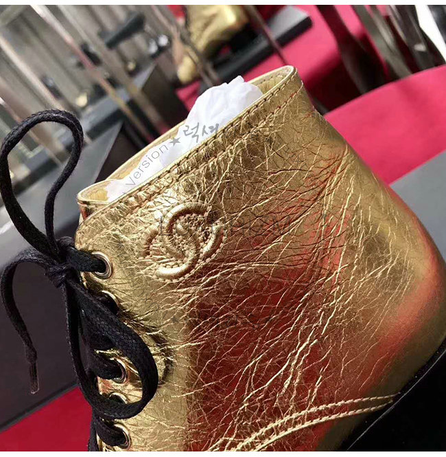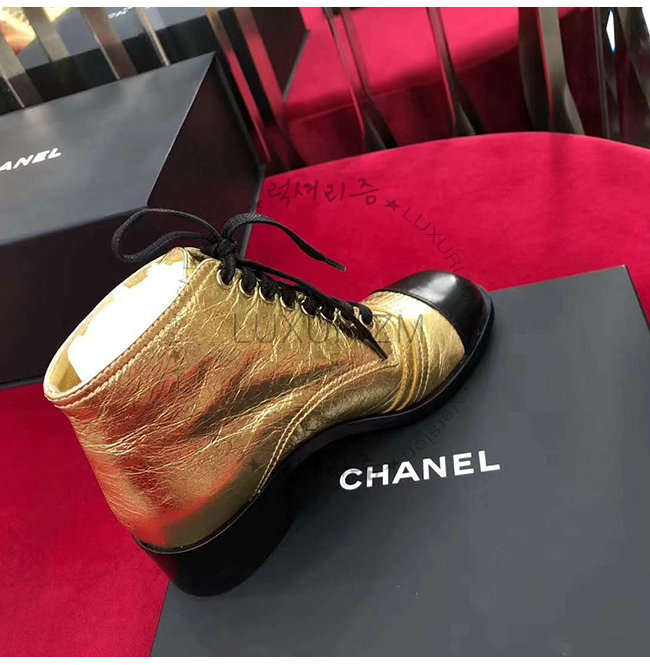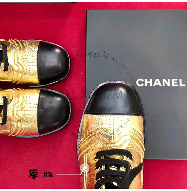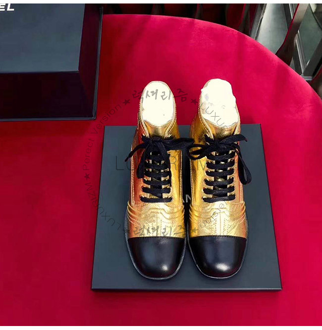 CHANEL-G33855 샤넬 골드 메탈릭 카프스킨 레이스업